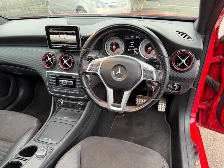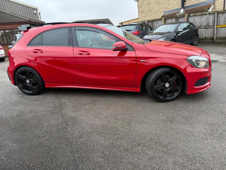 Here at M and A Cars we are pleased to bring you this lovely bright red high spec sports family 5 door hatchback producing 211bhp standard, coupled with an automatic gearbox makes this car a joy to drive, will come with 12 months mot @ point of sale with any advisories repaired, full Mercedes dealer service history printout, hpi clear, finished in radiant red paintwork with contrasting black part leather/alcantara amg sports interior with red stitching and seat belts, has panoramic slide and tilt sunroof, navigation, bluetooth, media, power fold mirrors, parking sensors, stainless steel twin exit exhaust, sports and eco mode, heated front seats, cruise control, steering wheel paddles, jet black amg alloy wheels, electric windows, power steering, remote central locking plus so much more, runs and drives excellent, DELIVERY AVAILABLE IF NEEDED, IF WITHIN 75 MILES IT WILL BE FREE OF CHARGE, ALL CARS COME WITH FREE 12 MONTHS AA BREAKDOWN COVER, FINANCE AVAILABLE AND PART EX AVAILABLE, WARRANTY, 5 DAY DRIVE AWAY INSURANCE AVAILABLE (TERMS AND CONDITIONS APPLY)delivery can be arranged, More info tel 01138033143, mob 01138033143. Over 30 cars always in stock on our website with stock changing daily. Manor Works, King Street, Drighlington, BD11 1LH. Conveniently Located 2 Minutes From Junction 27 On the M62 Motorway And M621 Motorway. Only 3-4 Minutes Drive From Junction 27 Retail.