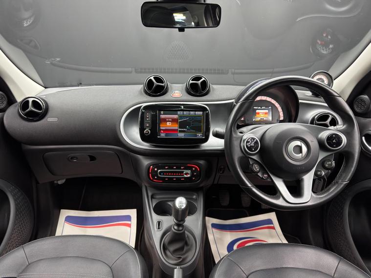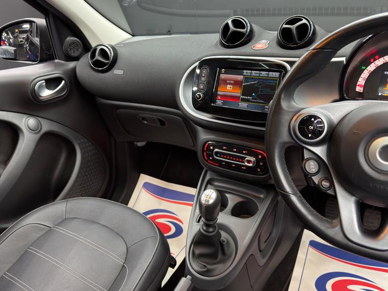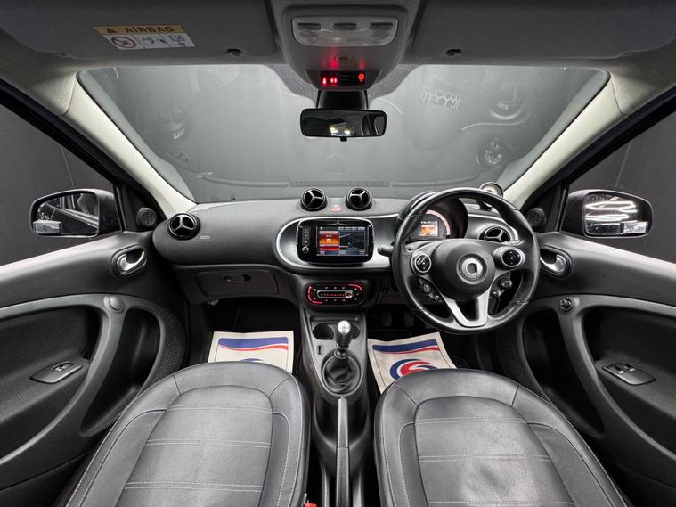 Here at Motor Gurus we are delighted to offer a Smart forfour 0.9T Prime (Premium). This vehicle is in immaculate condition inside and out. This specific vehicle is finished in a GLOSS BLACK and is matched with a BLACK LEATHER interior. This vehicle comes included with: REAR PARKING SENSORS, FIXED GLASS ROOF, CRUISE CONTROL, FRONT HEATED SEATS, TWIN CUPHOLDERS, CLIMATE CONTROL, SAT NAVIGATION, DAB RADIO, BLUETOOTH AUDIO, TELEPHONE CONNECTIVITY AND MUCH MORE! Our Smart forfour 0.9T Prime (Premium) has come to us with SERVICE HISTORY, 2 KEYS and is ONLY £20 TAX! We will also provide this vehicle with a 12 MONTH MOT as well as a FRESH OIL SERVICE before it leaves our premises (OTR)..