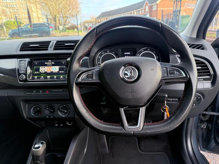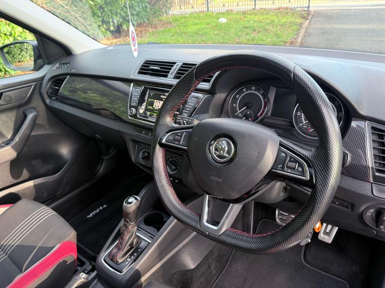 Gorgeous Skoda Fabia Monte Carlo finished in Quartz grey metallic paint, Looks fantastic being the sporty Monte carlo model, equipment includes sports bucket seats, panoramic glass roof, carbon interior trim, apple carplay & android auto connectivity, flat bottom red stitched multifunctional leather steering wheel, LED daytime running lights, privacy glass, black alloy wheels, black mirror caps, grille surround & splitter, air condtioning, cruise control with speed limiter, rear parking sensors with display, hill start assist, bluetooth connectivity, USB port. Powered by the 1.2 Tsi petrol engine this fabia is cheap to run & insure and would make for an ideal sporty automatic car, annual road tax is only £20, insurance group 12 rating and excellent fuel efficiency mean that this car will be cheap to run and insure. 2 owners from new, used for motorway commuting hence is in excellent condition all round, 2 keys and service histpry are present, we have just carried out a full engine service, Automatic gearbox service and installed a new cambelt kit to ensure the new owner will have no upcoming expenses, for added peace of mind this Fabia will leave us with a full 12 months MOT..