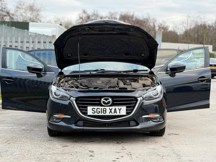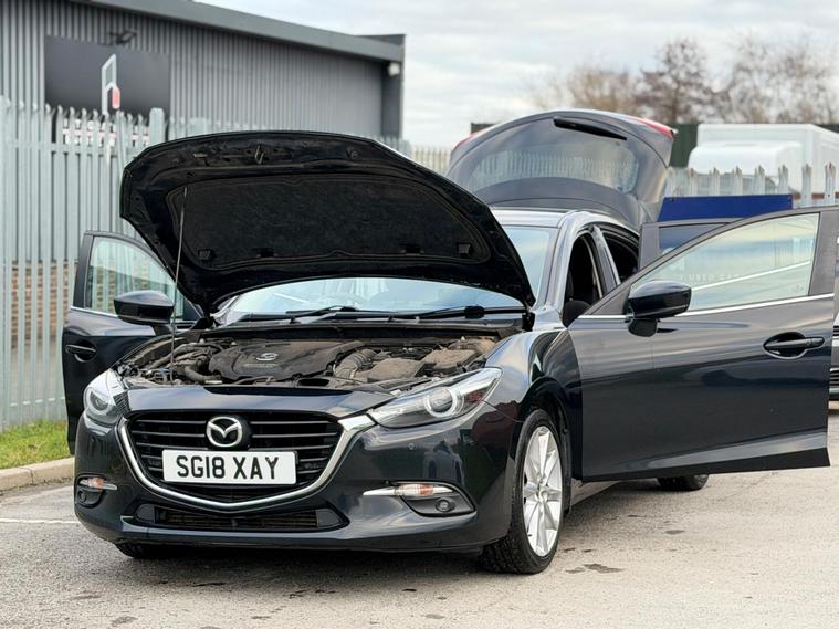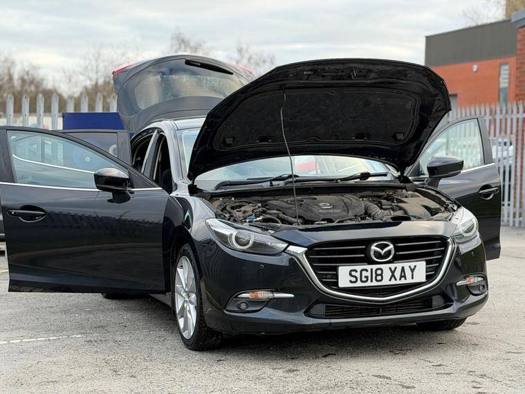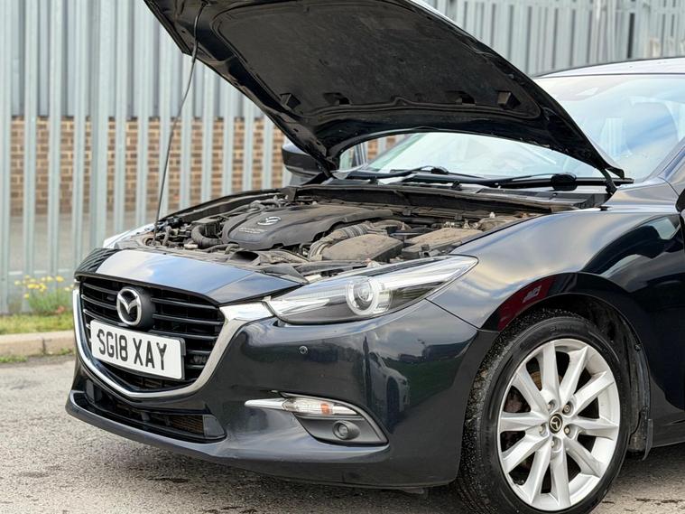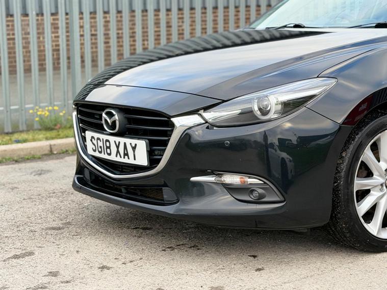 This 2018 Mazda3 SKYACTIV-D Sport Nav is presented with a clear vehicle history check, offering you peace of mind. This well equipped model features a 2.2 litre Euro 6 diesel engine, delivering an impressive 0-62mph in just 8.1 seconds. Inside, you'll find a Colour Active Driving Display which acts as a head up display, Smart Keyless Entry, and Dual-Zone Climate Control Air Conditioning. The Sport Nav trim also includes Dusk-Sensing Lights and front and rear parking sensors for added convenience.The Mazda3 SKYACTIV-D Sport Nav stands out with its remarkable fuel economy, achieving a highlight of 69 mpg, which is significantly better than many other vehicles in its class. Furthermore, its low insurance group rating means lower running costs, and the generous boot space provides ample room for all your needs. These combined highlights make this Mazda3 a practical and economical choice for everyday driving..
