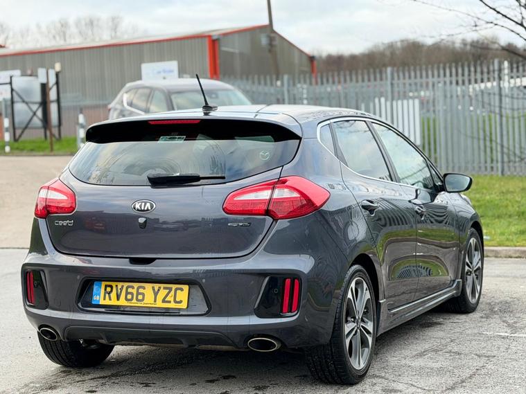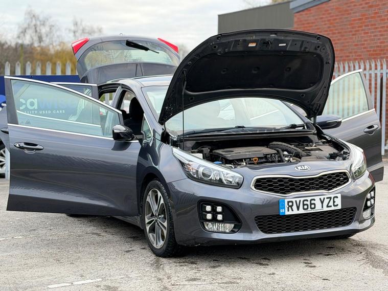 Boasting an impressive MOT valid until December 2026 and a full service history, this 2016 Kia Ceed CRDi GT-Line presents a compelling proposition. With a clear vehicle history check and a recent service completed on 31st December 2025 at 68, 765 miles, this vehicle has been meticulously maintained. It features a 1.6 litre Euro 6 diesel engine, offering an efficient and capable driving experience. The GT-Line trim level ensures a well appointed interior, enhanced by a Smart Key Entry System for effortless access, a Reversing Camera System and Rear Parking Sensors to aid manoeuvrability, and Dual Automatic Air Conditioning with an Ioniser for a comfortable cabin environment. Automatic Headlight Control adds further convenience.This Kia Ceed stands out with its exceptional fuel economy, achieving an impressive 72 miles per gallon, which is significantly better than many comparable vehicles. Its low CO2 emissions also contribute to lower running costs. The acceleration from 0 to 60 miles per hour in just 9.8 seconds demonstrates a responsive performance, while the low mileage of 68, 700 miles for its age is a notable advantage. Furthermore, the generous boot space provides ample room for luggage or shopping, making it a practical choice. This vehicle also benefits from a low insurance group, indicating it is more affordable to insure than many other cars in its class. A 3 month warranty is included for your peace of mind..