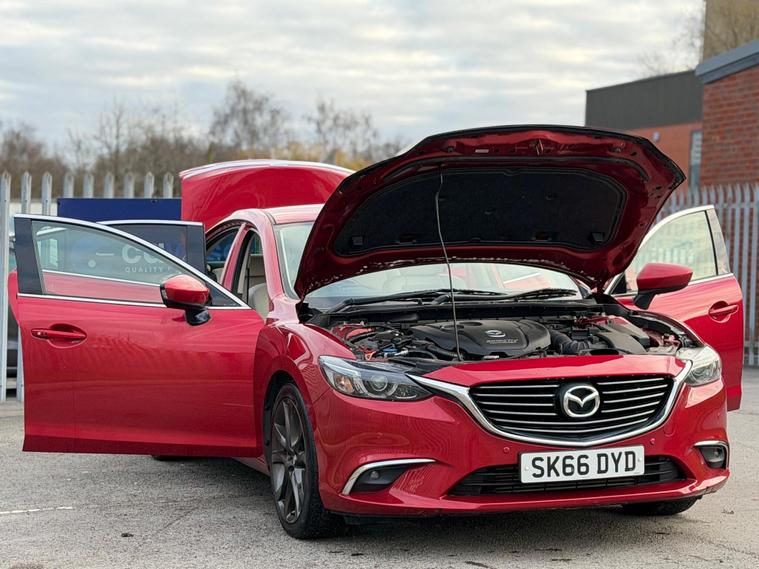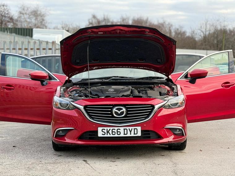 This 2016 Mazda6 SKYACTIV-D Sport Nav presents a compelling proposition with its MOT valid until June 2026, offering extended peace of mind. This Euro 6 compliant 2.2 litre diesel model boasts a clear vehicle history check and comes with a 3 month warranty for added reassurance. Key features include Smart Keyless Entry, Dusk-Sensing Headlights, and a Drivers Power Seat with Memory Function, ensuring convenience and comfort. Enjoy the warmth of 3-stage Heated Front Seats and the ease of a Reversing Camera.The Mazda6 SKYACTIV-D Sport Nav stands out with an impressive fuel economy of 69 mpg, indicating it is more economical than many similar vehicles. Its low CO2 emissions also mean it is more environmentally friendly. Furthermore, this model benefits from a low insurance group, suggesting lower running costs compared to other cars in its class. The generous boot space provides ample room for luggage or shopping, making it a practical choice for everyday use and longer journeys..