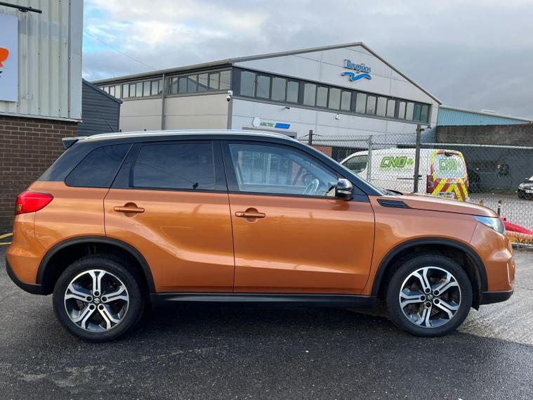 This 2016 Suzuki Vitara SZ5 is a well maintained example of this popular compact SUV. It features a responsive 1.6 litre petrol engine paired with a capable four wheel drive system, making it suitable for a variety of driving conditions. The SZ5 trim level ensures you benefit from a host of convenient features, including automatic air conditioning with climate control, keyless entry and start for effortless access, and automatic headlights that illuminate the road ahead without you needing to think about it. Maneuvering and parking are made simpler with the integrated rear parking camera, and for added peace of mind on longer journeys, adaptive cruise control helps maintain a set speed and distance from the vehicle in front.This particular Vitara stands out with its impressive fuel economy, achieving up to 50 miles per gallon, which is excellent for its class. Furthermore, its Euro 6 emission classification and low CO2 emissions indicate a more environmentally conscious choice. The vehicle also benefits from a low insurance group, suggesting that running costs could be more affordable compared to similar models. These factors combined highlight how this Suzuki Vitara offers a compelling blend of practicality, efficiency, and technology..