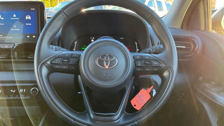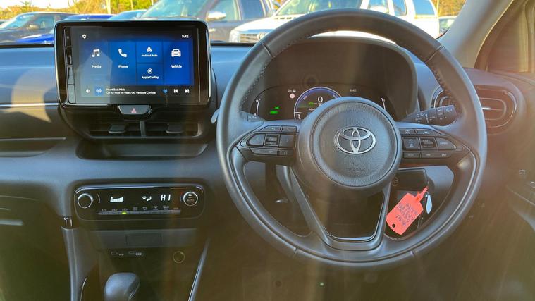 This 2025 Toyota Yaris VVT-h Design is a Toyota manufacturer approved vehicle with a full service history and only one owner from new, offering excellent peace of mind. It features a 1.5L petrol hybrid engine, meeting Euro 6 emission standards and boasting low CO2 emissions. The Design trim level includes a reversing camera with parking assistance, LED headlights, automatic headlights, and automatic air conditioning for your comfort and convenience.Enjoy seamless connectivity with smartphone integration, including Apple CarPlay and Android Auto, allowing you to access your favourite apps safely on the go. This Yaris also comes with a 12 month warranty, ensuring your investment is protected. The combination of its efficient hybrid powertrain, advanced technology, and comprehensive provenance makes this Toyota Yaris a standout choice for those seeking a reliable and modern vehicle..