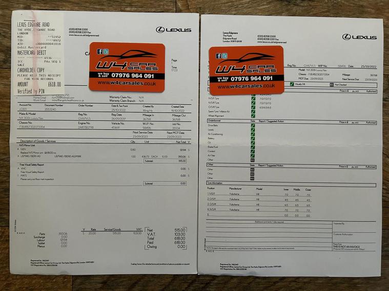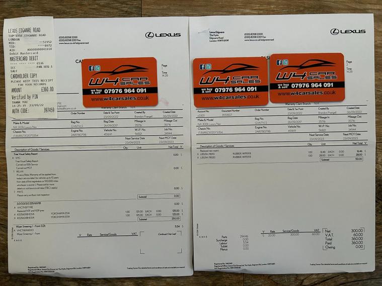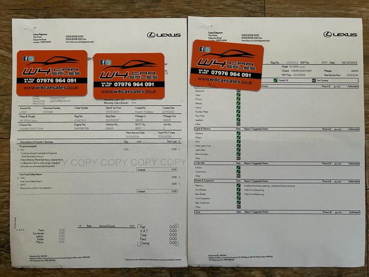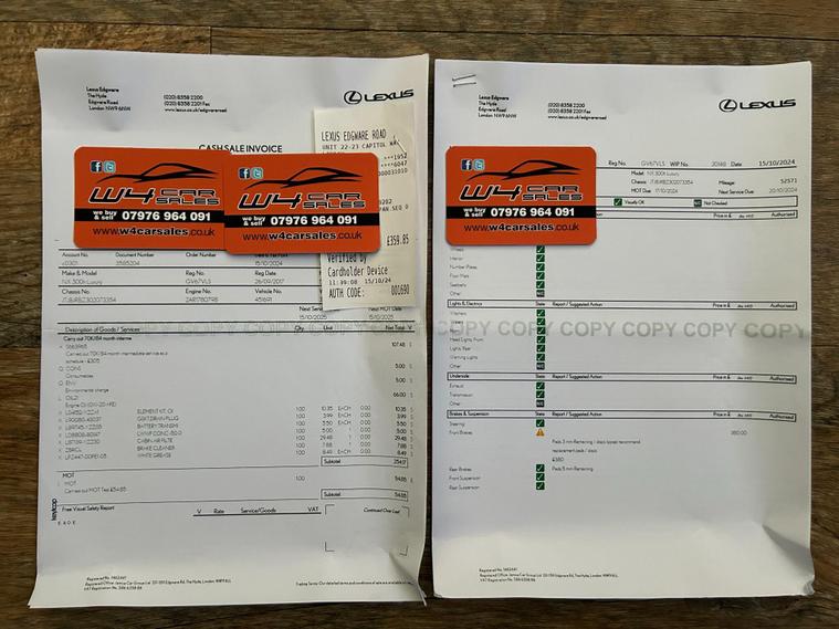 2 KEYS F/LEXUS SERVICE HISTORY.