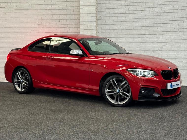 Reserve now with a fully refundable deposit - call 01274914061BMW 2 Series 2.0 220d M Sport Auto xDrive Euro 6 (s/s) 2dr2018/18 YL18 MZG79, 000 service history next service due in 11, 000 milesMOT Aug 20262 keysSpecXdrive M Performance style front splitter, rear diffuser, rear spoiler and gloss black front grillFinished in desirable Melbourne Red metallicAlcantara sports interiorPaddle shiftCruise controlBluetooth mediaWide screen professional navigation systemSun protection glazingAny part exchange is welcomeNationwide delivery serviceFinance available.