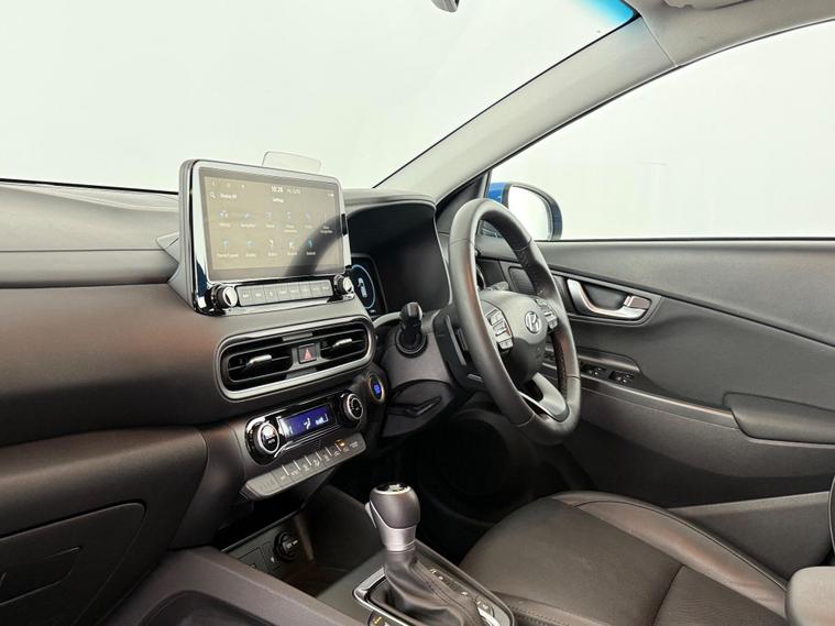 Our Hyundai Kona is finished in Blue. With a great specification, our Kona includes features such as 18 Inch Alloy Wheels, Electric Folding Mirrors, Front and Rear Electric Windows, Privacy Glass, Sunroof, Air Conditioning, Bluetooth, DAB Radio, Heads Up Display, Keyless Entry, Multi-Function & Heated Steering Wheel, Paddle Shift, Reverse Camera, Satellite Navigation, Speed Limiter, Upgraded Sound System, USB, Black Leather Trim, Central Armrest, Cup Holders, Electric Seats, Folding Rear Seats, Heated and Cooled Seats, Rear Central Armrest, Start/Stop Button, ISOFIX, LED Daytime Running Lights, LED Tailights, Remote Central Locking. All Car Planet stock is carefully picked, so you can buy from us with confidence. Each vehicle undergoes a thorough 150-point check at our preparation hub by our qualified specialists. Every car purchased comes with a free 12-month AA breakdown cover plan option to extend to 60 months warranty. You can reserve any of our cars online, with a refundable £99 reservation at dealer's website We also offer the option to purchase online and you can have your new car delivered to your door step from £199 in as little as 48 hours. Alternatively, come and visit our Barnet site where our friendly Car Gurus will assist you every step of the way. If you prefer a virtual appointment, we offer same-day video-viewings. We offer a range of flexible finance options from our panel of lenders. Part-exchanges are available upon request. Simply select, secure and drive..