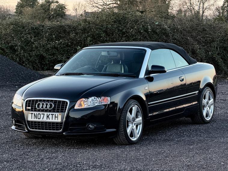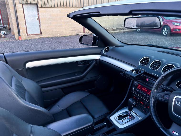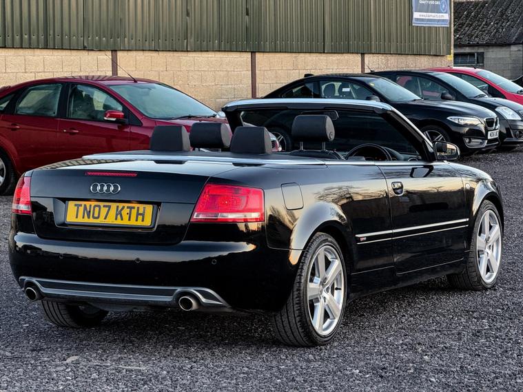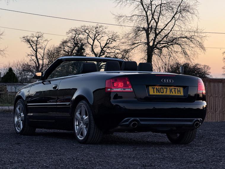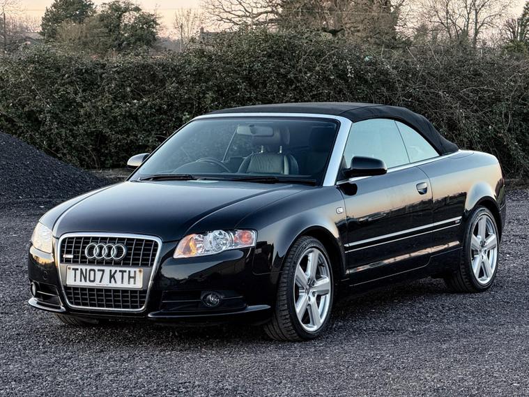 This 2007 Audi A4 Cabriolet T S line boasts a remarkable history, having been owned by just one individual since new. This particular S line model is equipped with a 1.8 litre petrol engine and comes with a clear vehicle history check for your peace of mind. It also benefits from a 6 month warranty, ensuring your confidence in this well maintained vehicle. The last service was completed on 20 December 2025 at 53, 679 miles, and it features heated electrically folding door mirrors for added convenience.The Audi A4 Cabriolet T S line offers an impressive fuel economy of 33 miles per gallon, demonstrating its efficiency. Furthermore, its low CO2 emissions make it a more environmentally conscious choice compared to many other vehicles. You'll also appreciate the generous boot space, providing ample room for your luggage or shopping. These highlights collectively indicate that this Audi A4 Cabriolet is a superior option for those seeking a stylish and practical convertible..