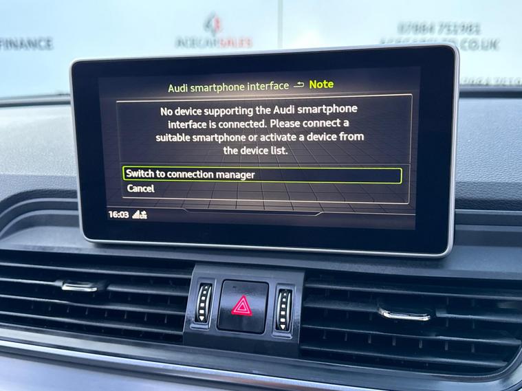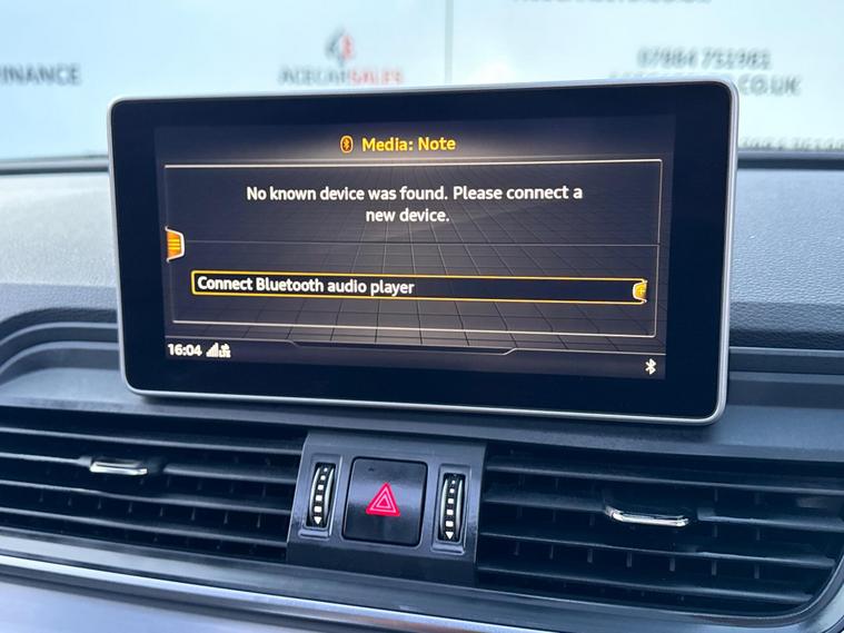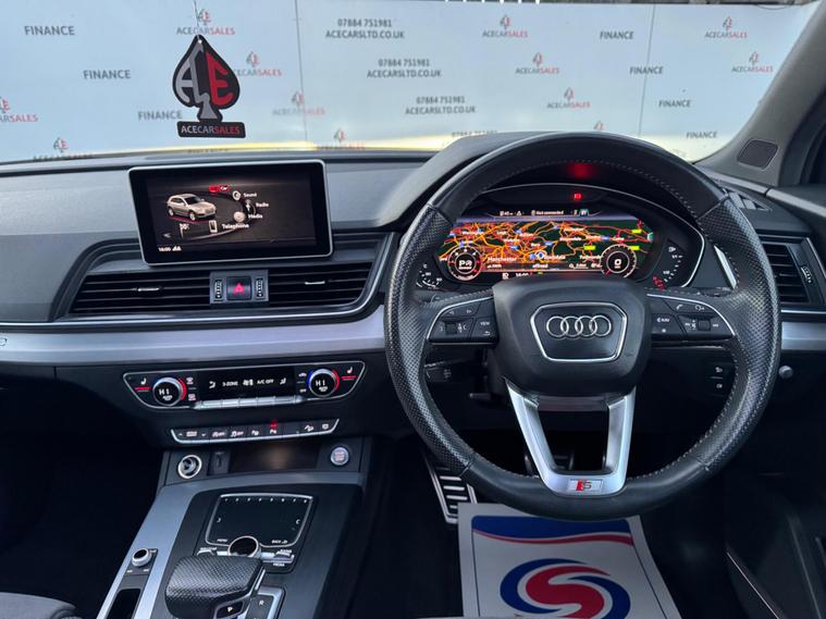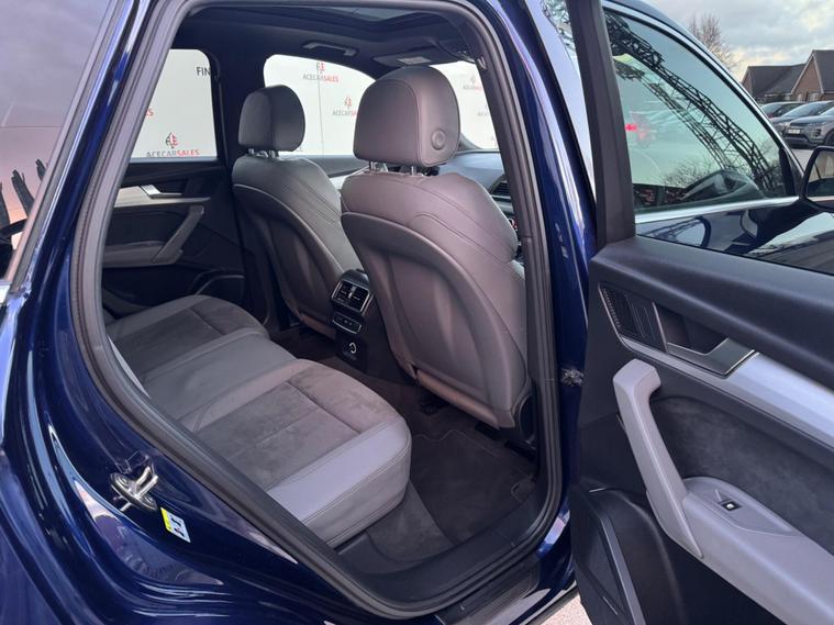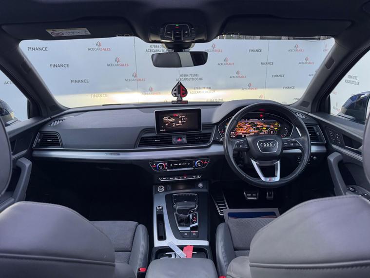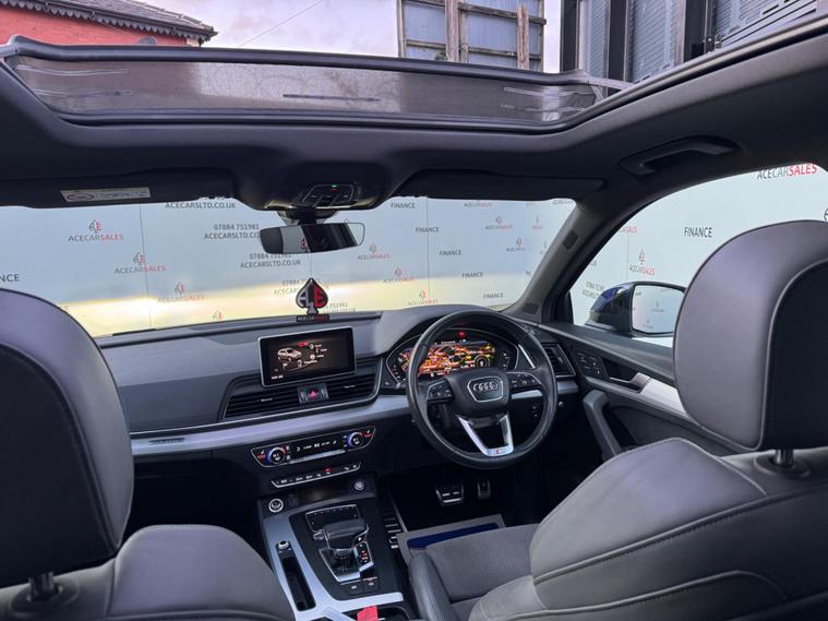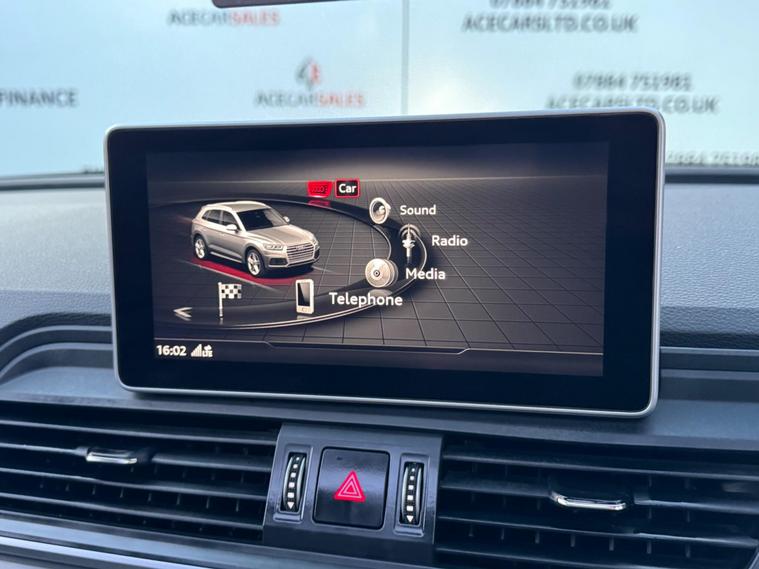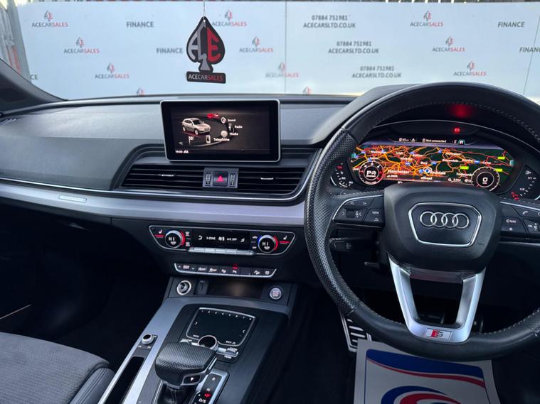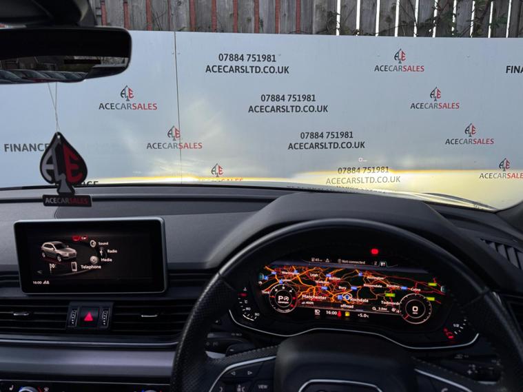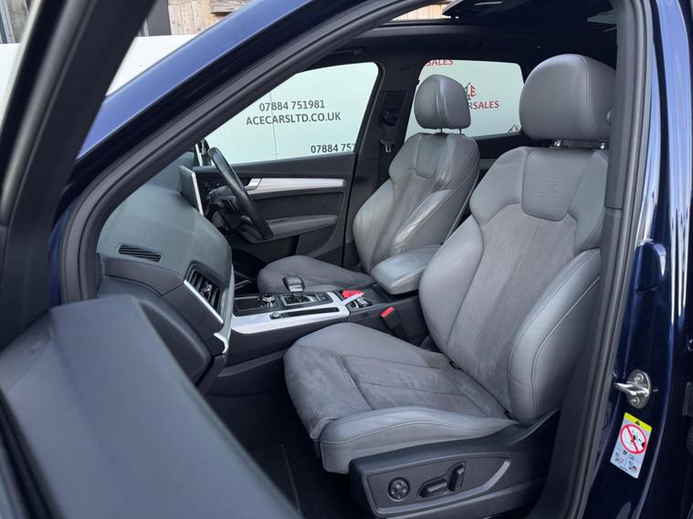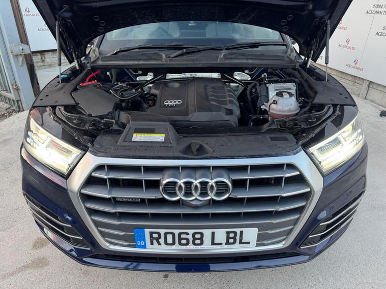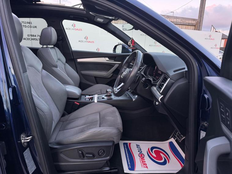 FINANCE & PCP AVAILABLE, COMPLEMENTARY WARRANTY INCLUDED, WE TAKE PART EXCHANGE! Audi Q5 2.0 TDI 40 S line S Tronic quattro Euro 6 (s/s) 5dr. HPI Clear, Full Adui Dealership Service History, 10 Months MOT, 1 Owner From New, 2 Keys, EURO6 ULEZ Compliant, Fuel Consumption 53.3MPG, Panoramic Glass Sunroof Sliding/Tilting, Keyless Entry, Keyless Start, Virtual Cockpit, Bang & Olufsen Sound System, Heads Up Display, Cruise Control, Speed Limiting Function, Reverse Camera - 360 Around View With Side/Front/Rear Views, Parking Sensors - Front And Rear, Park Assist Function, Blind Spot Monitoring Function, Audi Pre-Sense City, Multi Collision Brake Assist, Speed Warning, Rest Recommendation System, Efficiency Assist, Dynamic Suspension, Electromechanical Power Steering, QUATTRO, Audi Drive Select Offroad/Efficiency/Comfort/Auto/Dynamic/Individual With Settings, Paddle Shifts, Sports Gearbox Mode With Manual Shifting, Hill Descent Control, Hill Hold Assist, Electromechanical Parking Brake, Traction Control, Electronic Stabilisation Control, Anti Lock Braking System, Anti Slip Regulation, Electronic Differential Lock, Tyre Pressure Warning Light, Headlights - Automatic, LED Headlights, Daytime Running Lights, Headlights - High-Beam Assist, LED Rear Lights and Dynamic Rear Indicators, LED Interior Lighting Pack, Light and Rain Sensor, Electric Windows, Electric Mirrors, Folding Mirrors, Electric Opening/Closing Tailgate, Electric Functioned Front Seats With Driver Memory Function, Heated Front Seats, Automatic Dual Zone Climate Control, Air Conditioning, Front And Rear Screen Demisters, Colour Screen Media Interface, Virtual Cockpit With Changing Views And Drivers Information Display, Audi Phone Box With Wireless Charging, Smartphone Interface, Navigation, Traffic Information, Bluetooth, Radio, DAB, AUX, USB, Telephone Connection, Voice Control, Multifunctional Steering Wheel, Alcantara & Leather Seats In Grey, Aluminium Design Door Sill Trims With Alcantara Door Card, S Line & QUATTRO Interior Design, Exterior Badging, Aluminium Roof Rails, 19inch Alloy Wheels..