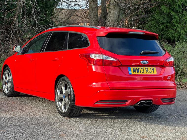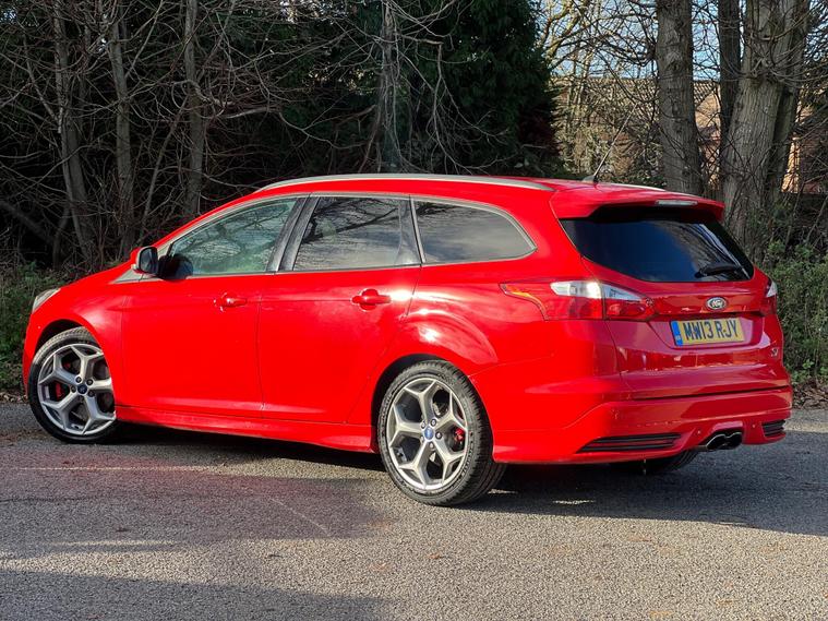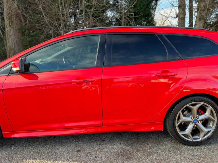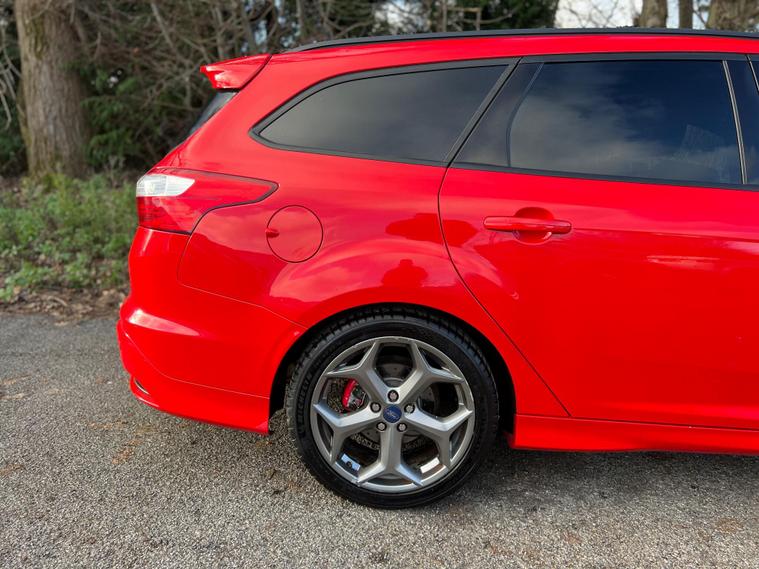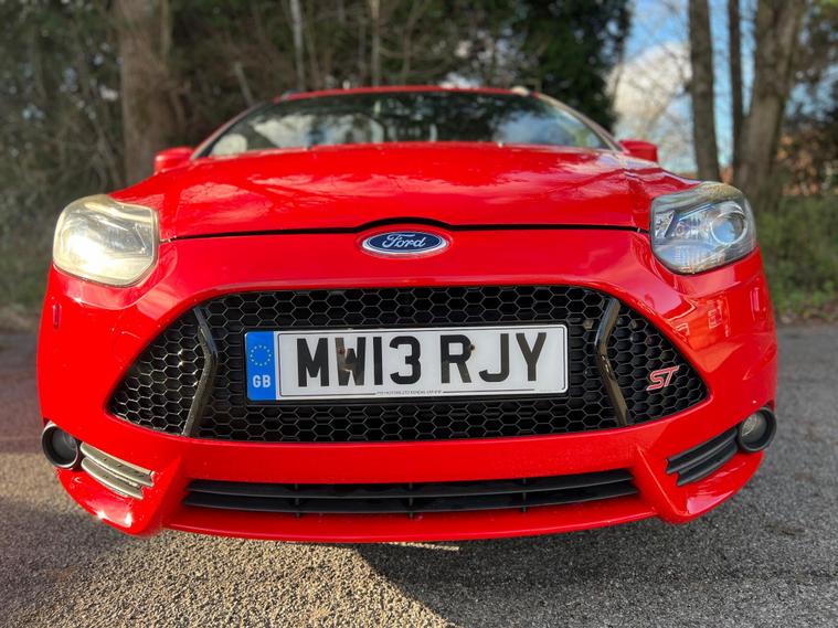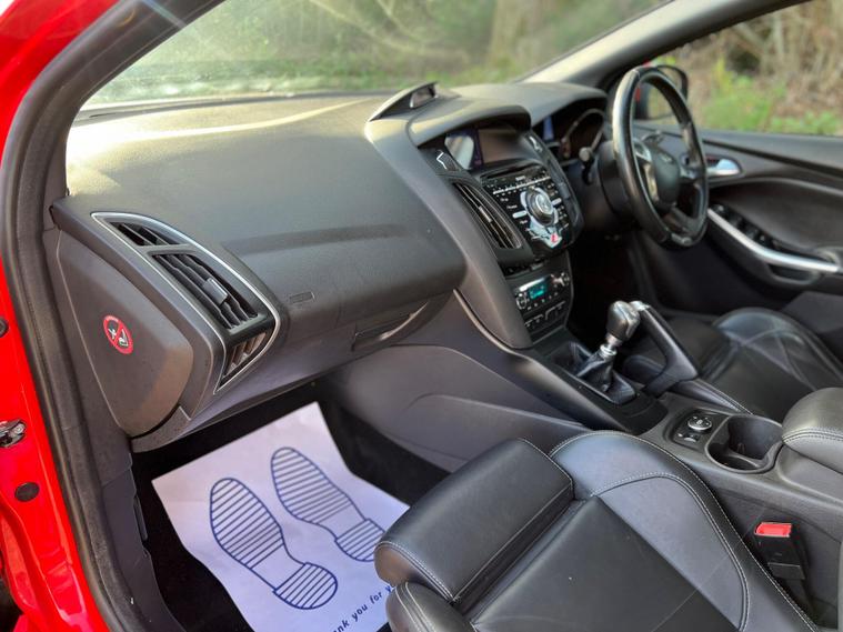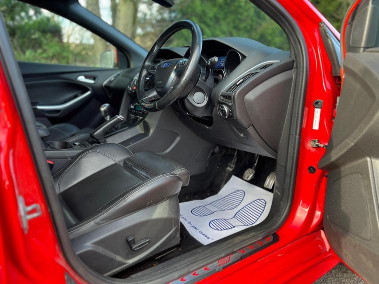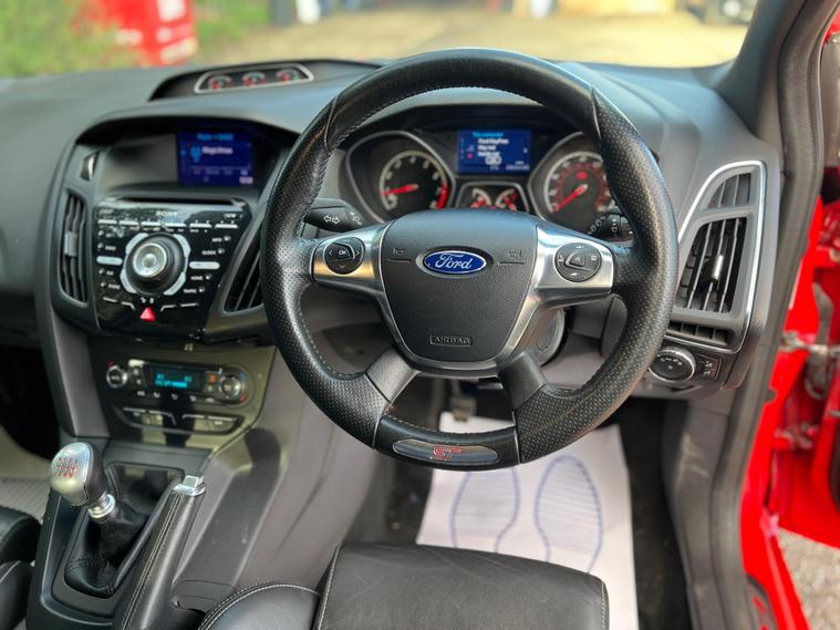 This 2013 Ford Focus ST-3 is a performance-focused hatchback that offers an exhilarating driving experience. Powered by a potent 2.0L petrol engine, this model boasts an impressive 0-62mph acceleration time of just 6.5 seconds, showcasing its dynamic capabilities. The ST-3 trim level ensures a premium feel, complemented by features such as heated driver and passenger seats for enhanced comfort, and DEATC dual-zone electronic automatic temperature control for personalised cabin climate.Further enhancing the driving experience are the Bi-Xenon headlights, providing superior illumination, and keyless entry for effortless access. Practicality is also considered with rear parking sensors to assist with manoeuvring. These notable features, combined with the Focus ST-3's renowned sporty handling and brisk acceleration, position this vehicle as a compelling choice for those seeking a blend of performance and everyday usability..