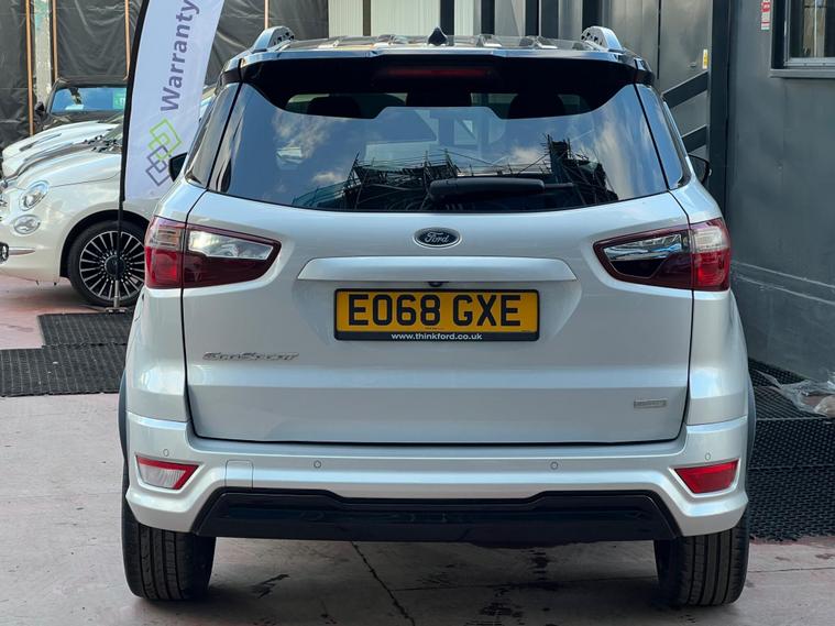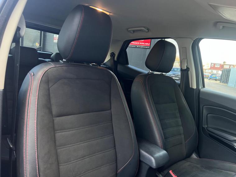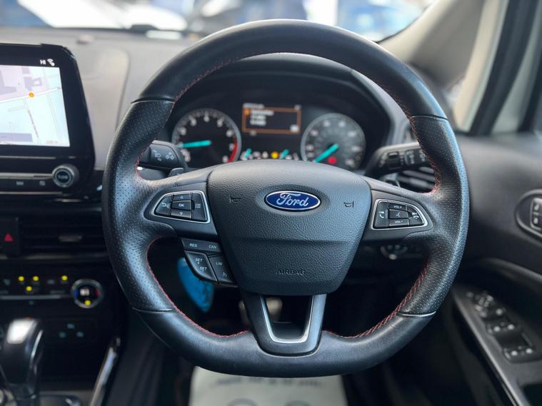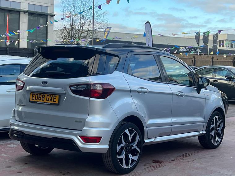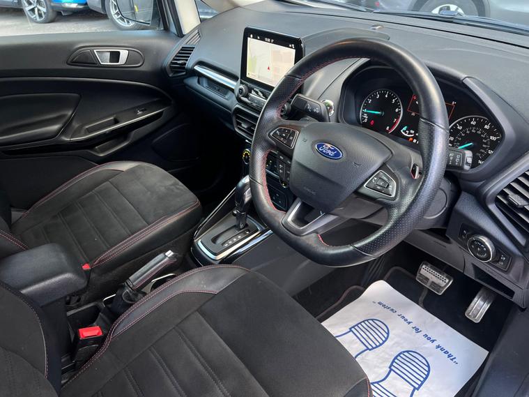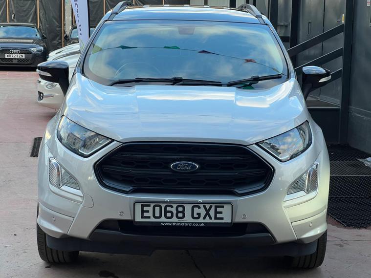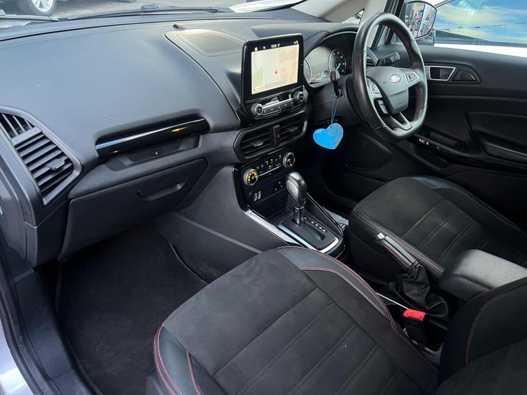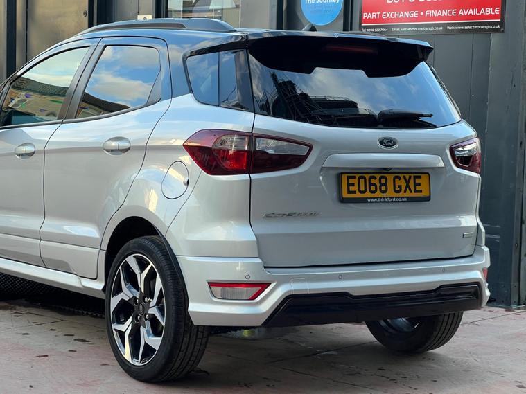 SELECT MOTORS (GB) IS DELIGHTED TO OFFER YOU THIS STUNNING FORD ECOSPORT ST-LINE 5DR IN SILVER COLOUR AND COMPLEMENTED WITH 17IN 5 SPOKE DESIGN ALLOY WHEELS. THIS VEHICLE HAS AN IMPRESSIVE SPECIFICATION WHICH INCLUDES THE FOLLOWING; SATELLITE NAVIGATION SYSTEM, CARPLAY FOR IPHONE AND ANDROID AUTOS, REVERSING CAMERA WITH SENSORS, BLUETOOTH CONNECTIVITY FOR PHONE AND MEDIA, DAB-FM/AM RADIO, ELECTRONIC AUTOMATIC TEMPERATURE AIR CONDITIONING, KEYLESS START ENGINE AND STOP PUSH BUTTON, CRUISE CONTROL WITH SPEED LIMITER, 8IN TOUCH SCREEN, ELECTRICALLY ADJUSTABLE AND FOLDING DOOR MIRRORS, TYRE PRESSURE WARNING SYSTEM. THIS VEHICLE IS ULEZ EXEMPT. WE ARE OFFERING NATIONWIDE DELIVERY ON ALL VEHICLE (PLEASE GET IN TOUCH DIRECTLY FOR DETAILS). WE CAN ALSO CONDUCT VIRTUAL VIEWINGS AND ACCOMMODATE ANY REQUESTS YOU MAY HAVE. ALL OUR ADVERTISED STOCK IS TEST-DRIVEN, INSPECTED BY OUR MECHANIC TO MAKE SURE OUR CUSTOMERS DRIVE AWAY WITH THE BEST QUALITY CARS. WE CAN PROVIDE A VIDEO WALK AROUND THIS VEHICLE UPON REQUEST., ALL OF OUR VEHICLES ARE SUPPLIED WITH A 3 MONTHS WARRANTY WITH EXTENDED OPTION. 12 MONTHS FREE AA BREAKDOWN COVER. FINANCE AVAILABLE..