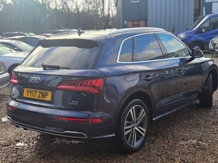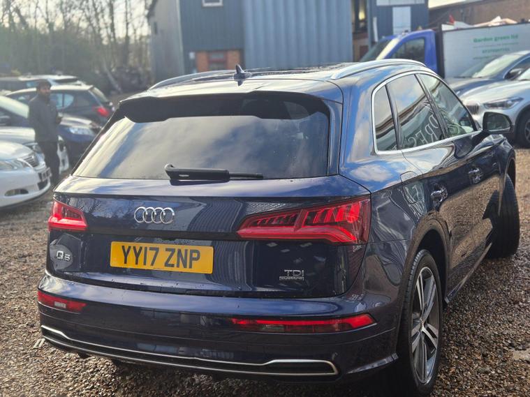AUTOMATIC + SAT NAV + PARKING AID + ULEZ FREE + FREE WARRANTY + APPLY FOR FINANCE VIA OUR WEBSITE FOR SAME DAY DECISION + 3 OWNERS + SERVICE HISTORY CLIMATE AND CRUISE CONTROL + FRONT HEATED SEATS + HALF LEATHER + + LONG MOT + USB + AUX + FREE DRIVE AWAY INSURANCE + YOU CAN APPLY FINANCE ON LINE VIA OUR WEBSITE + MESSAGE US VIA WHATSAPP AT 01753293362 / 01753293362 + VIDEO VIEWING AVAILABLE VIA WHATSAPP + CLICK AND COLLECT WITH JUST £100 DEPOSIT + NATIONWIDE HOME DELIVERY AVAILABLE WITH DELIVERY CHARGEThis 2017 Audi Q5 TDI S line offers a compelling blend of performance and practicality, boasting a powerful 2.0 litre diesel engine and a robust four wheel drive system. As a Euro 6 compliant vehicle, it meets stringent emission standards, making it a responsible choice. The S line trim ensures a sporty aesthetic and enhanced interior comfort, complemented by features such as Deluxe 3-Zone Climate Control, a Bluetooth interface for seamless connectivity, and heated front seats for those colder journeys. Navigating tight spaces is made effortless with the Audi Parking System Plus, which includes front and rear sensors, while the Light and Rain Sensor automatically manages headlights and wipers. With a substantial towing weight of 2400 kg, this Q5 is ready for adventure.Experience efficiency and capability with this Audi Q5, achieving an impressive 55 miles per gallon, a highlight that demonstrates its superior fuel economy compared to many similar vehicles. Its acceleration from 0-62mph in just 7.9 seconds showcases its dynamic performance. Furthermore, the Q5 offers generous boot space, providing ample room for luggage, shopping, or equipment, and its low CO2 emissions further underscore its efficiency..