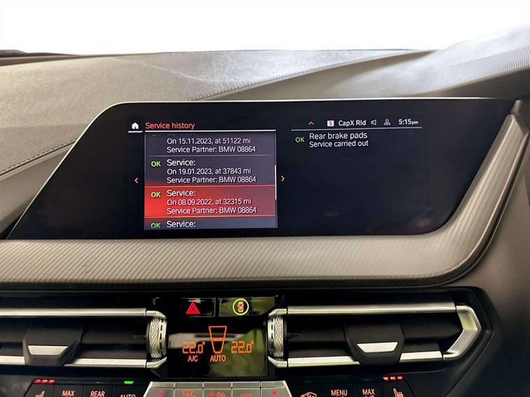 This 2021 BMW 1 Series 118i M Sport benefits from a partial service history, offering a well maintained example of this popular hatchback. Finished in the sporty M Sport trim, this model features a responsive 1.5 litre petrol engine and meets Euro 6 emissions standards. Inside, you'll find the comfort of Perforated Dakota Leather in Black with a distinctive Blue Highlight, complemented by the advanced BMW Live Cockpit Plus which includes Bluetooth connectivity. For convenience and safety, it is equipped with PDC Park Distance Control for both the front and rear, along with a Rain Sensor that automatically activates the headlights.The driving experience is further enhanced by the inclusion of a Bluetooth Hands Free system with a USB Audio Interface, ensuring seamless connectivity on the go. This BMW 1 Series 118i M Sport also boasts a generous boot space, making it practical for everyday use and longer journeys. Its performance is notable, achieving 0 to 62 miles per hour in just 8.5 seconds, demonstrating a spirited acceleration that sets it apart.For peace of mind this vehicle comes with service history and has completed a multi point AA dealer's website finance is also available.We are open 7 days a week and have more than 1500 cars to choose from.All our Euro 4 Petrol and Euro 6 Diesel vehicles meet the ULEZ standard.Vehicle specification can be found below. From time to time vehicles have manufacturer recalls notified. Please read our recall policy on our website for further information..