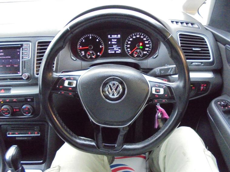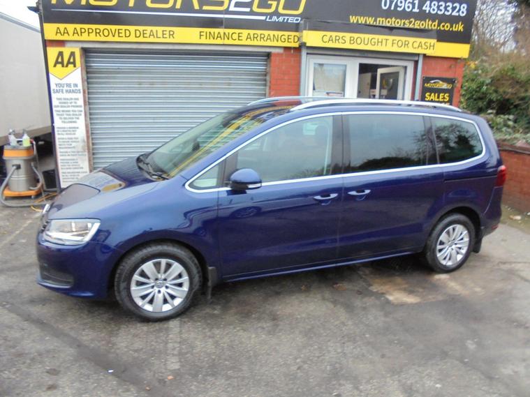 VOLKSWAGEN SHARAN 2.0 TDI SEVAV DSG (AUTOMATIC)EURO 6.THIS IS A ONE PREVIOUS OWNER FROM NEW MPV WITH FULL SERVICE HISTORY BY MAIN AGENTS AND CAM BELT AND WATERPUMP CHANGE COMES IN METALLIC BLUE WITH CONTRASTING BLACK DETAILED CLOTH INTERIOR.FANTASTIC SPEC WITH SAT NAV, BLUETOOTH CONNECTIVITY, FRONT AND REAR PARKING SENSORS, AIRCON, CRUISE CONTROL, USB+AUX AND 16 INCH ALLOY WHEELS.FANTASTIC VALUE SEVEN SEAT AUTOMATIC MPV.FRESH MOT UNTIL DECEMBER 2026 AND FRESH SERVICE.12 MONTHS FREE AA BREAKDOWN COVER AND 18 MONTHS WARRANTY INCLUDED IN PRICE.FINANCE AVAILABLE P/X WELCOME..