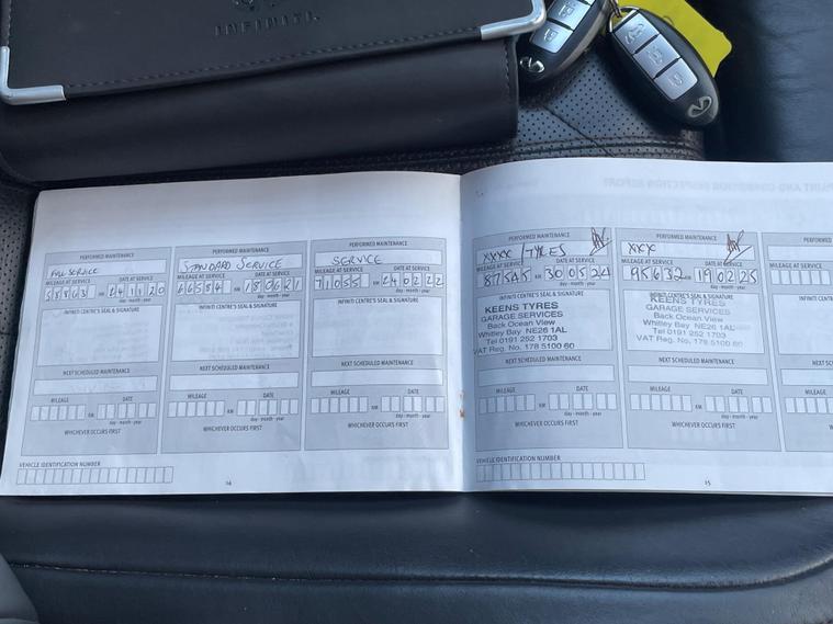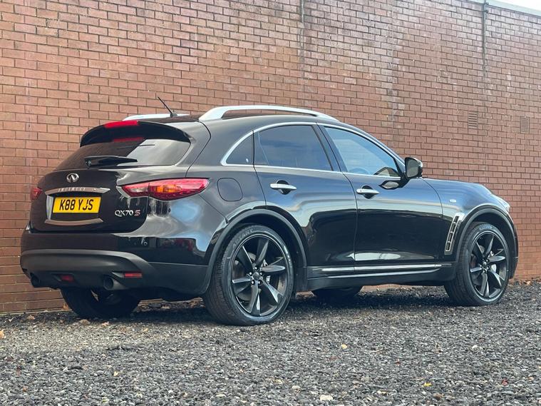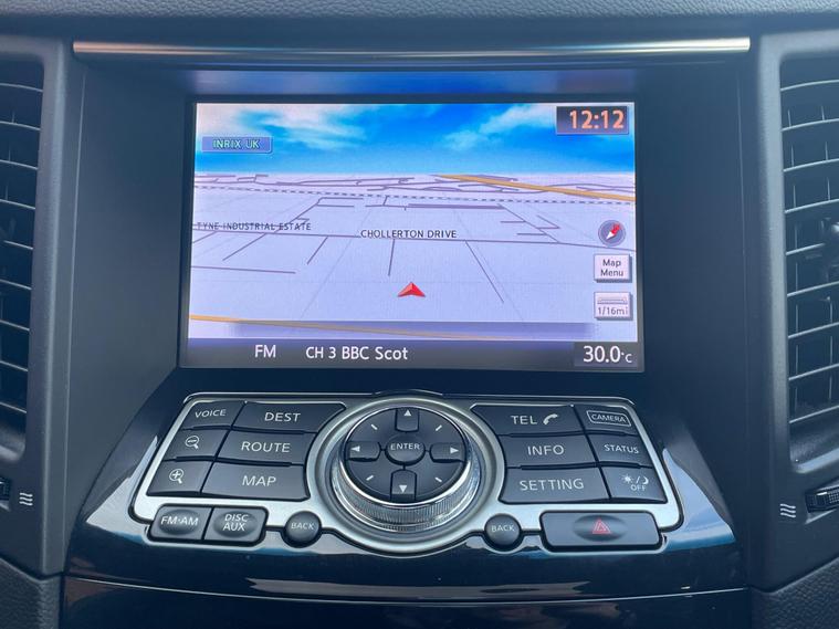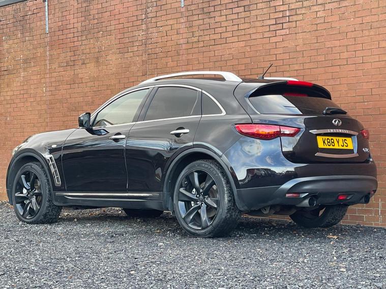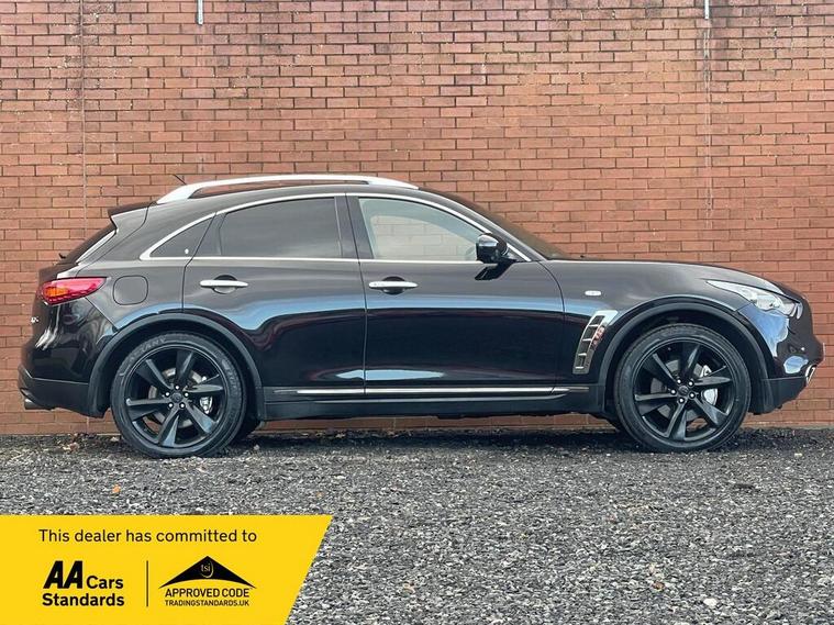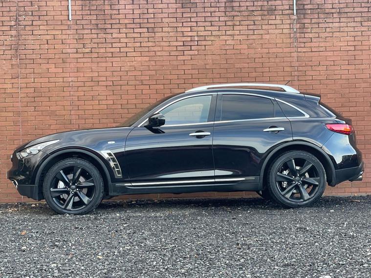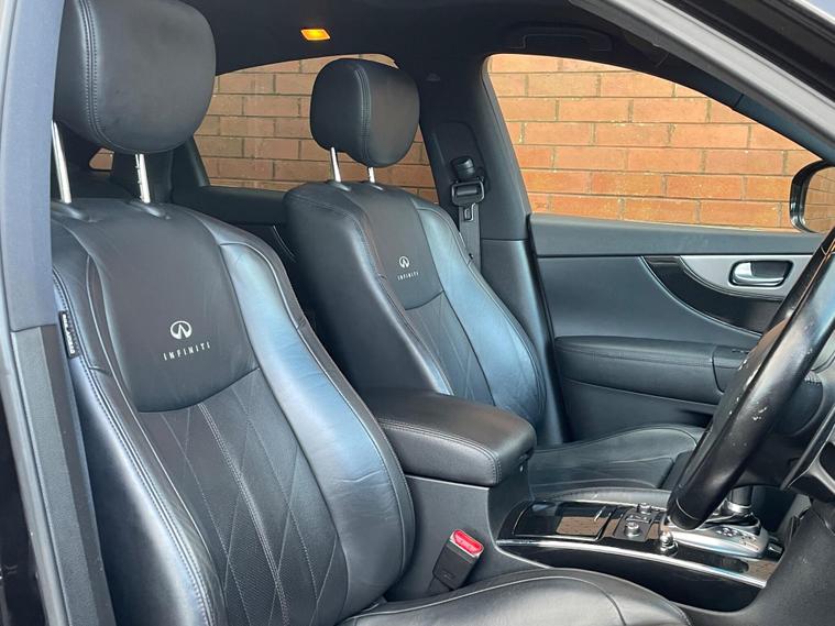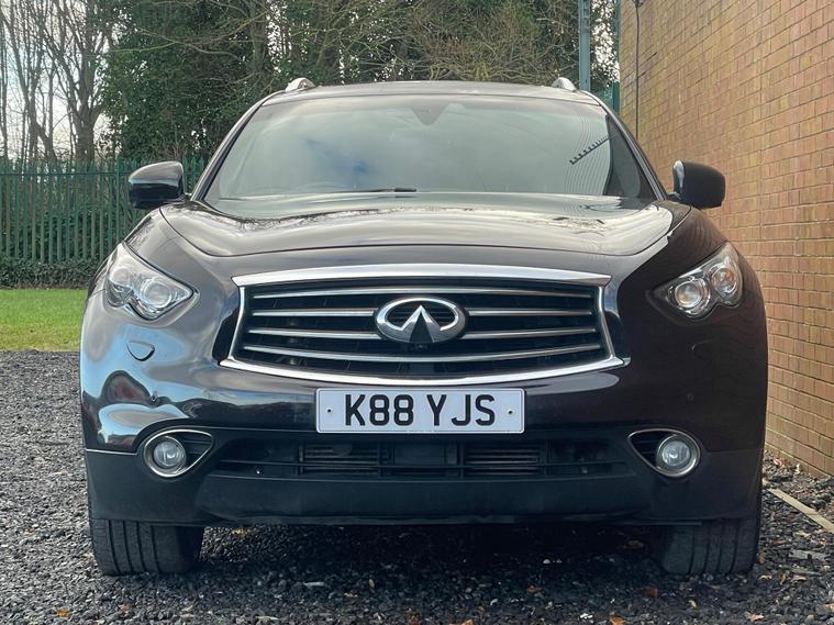 This 2012 Infiniti FX 30d V6 boasts a clear vehicle history, offering you peace of mind. This four wheel drive SUV is powered by a 3.0 litre Mercedes V6 diesel engine and features an Executive Black leather trim with Aluminium interior detailing. Convenience is key with memory settings for the driver's seat, steering wheel column, and door mirrors, all accessible via the I Key with Smart Access and Tailgate Release. Parking is made simpler with front parking sensors, and the headlights automatically adjust thanks to light sensors.The Infiniti FX 30d V6 offers a compelling blend of performance and practicality. Its 3.0 litre diesel engine delivers brisk acceleration, reaching 0-62mph in just 8.3 seconds, a figure that demonstrates its capability compared to many vehicles in its class. With a substantial towing weight of 2200 kg, this SUV is well equipped for a variety of needs, making it a versatile choice for those seeking both style and substance..
