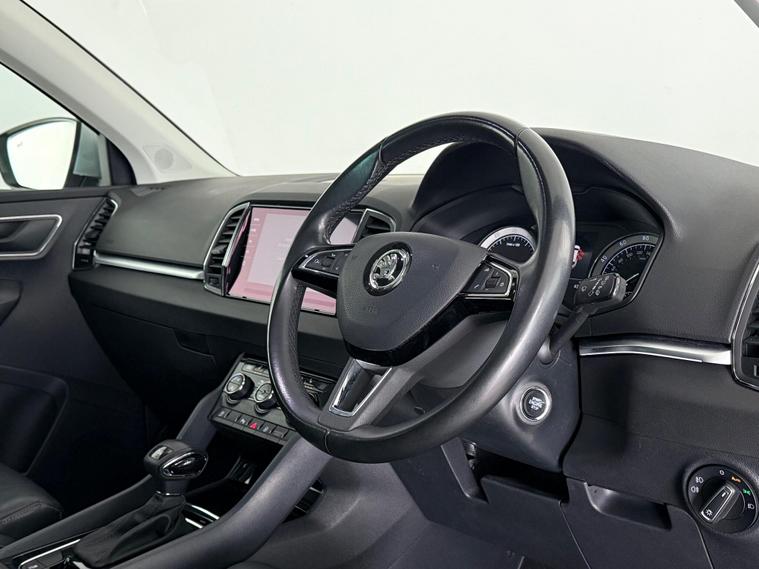 Our Skoda Karoq is finished in Silver. With a great specification, our Karoq includes features such as 19 Inch Alloy Wheels, Front and Rear Electric Windows, Panoramic Sunroof, Roof Rails, Air Conditioning, Bluetooth, DAB Radio, Multi-Function Steering Wheel, Parking Sensors, Reverse Camera, Satellite Navigation, USB, Black Leather Trim, Central Armrest, Cup Holders, Electric Memory Seats, Electric Tailgate, Folding Rear Seats, Heated Seats, Start/Stop Button, ISOFIX, LED Daytime Running Lights, LED Headlights, LED Tailights, Remote Central Locking. All Car Planet stock is carefully selected, so you can buy with confidence. Every vehicle undergoes a thorough 150+ point inspection at our dedicated preparation hub by qualified specialists. Every car comes with 12 months of free AA breakdown cover, with the option to add an RAC warranty for up to 60 months of extended protection. You can reserve any car online with a fully refundable £99 reservation at dealer's website We also offer nationwide delivery from just £199, with your new car arriving in as little as 48 hours. We also welcome you to visit one of our retail sites in Barnet or Watford, where our friendly team will guide you through the process and help you find the perfect car. If you're unable to visit in person, same-day video viewings are also available. We offer a range of flexible finance options from our panel of trusted lenders, and we welcome part-exchanges. Simply select, secure, and drive..