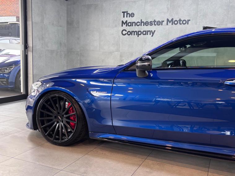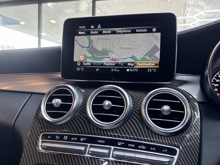 This 2018 Mercedes Benz C Class C63 V8 BiTurbo AMG (Premium) boasts a clear vehicle history, offering peace of mind for its next owner. Powered by a potent 4.0L petrol engine and meeting Euro 6 emissions standards, this AMG model comes equipped with a Premium Package that includes a branded sound system, LED high performance headlamps with integrated daytime running lights, and a panoramic sunroof for an enhanced driving experience. Comfort is further assured with heated front seats and the convenience of keyless entry.Experience exhilarating performance with this C63, capable of accelerating from 0 to 62mph in a remarkable 4.0 seconds. This impressive acceleration highlights its superior engineering compared to other vehicles in its class. The inclusion of a Bluetooth interface for handsfree calls ensures you stay connected safely on the go..