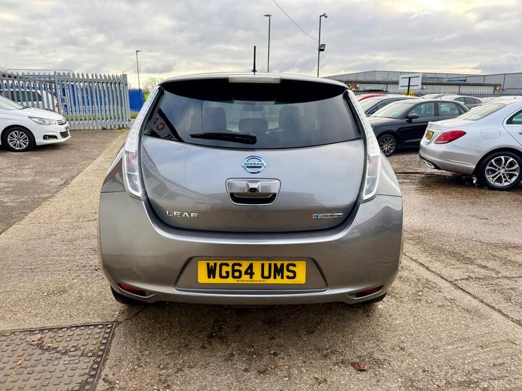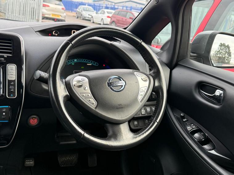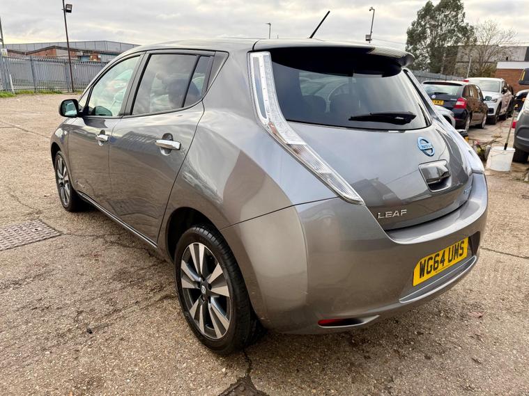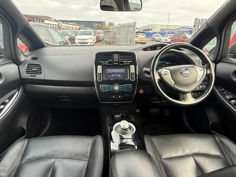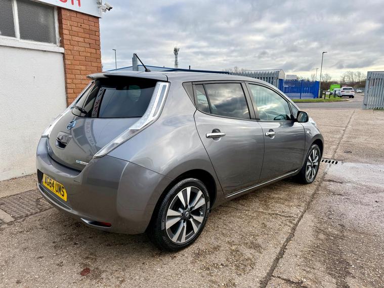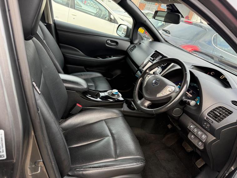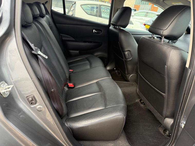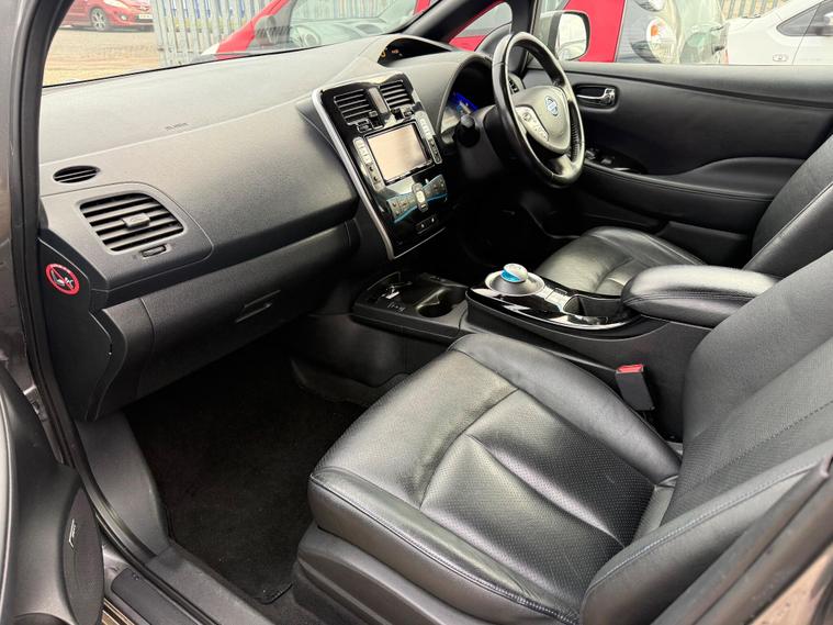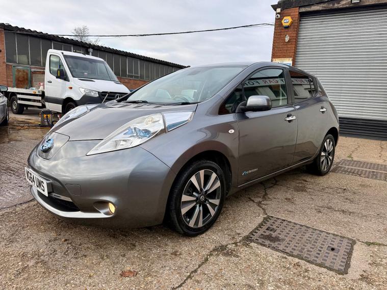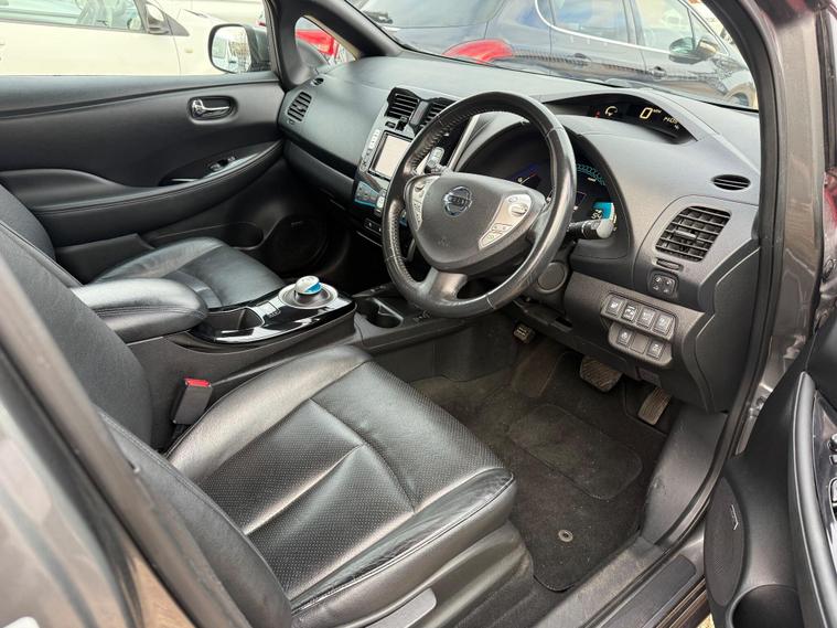 Discover this 2014 Nissan Leaf Tekna, a superb example of electric motoring. This model boasts a 24 kWh battery, offering a maximum range of 124 miles when new, making it ideal for daily commutes and longer journeys. Charging is convenient, with a full charge achievable at home in approximately 8 hours using a 7kW charger, and rapid public charging can take you from empty to 80% in just 30 minutes. Inside, you'll appreciate the comfort of heated front seats and a heated steering wheel, perfect for cooler days. The Tekna trim also includes automatic headlights and energy efficient digital climate control to maintain a pleasant cabin temperature.Experience superior sound quality with the integrated Bose audio system, featuring seven speakers for an immersive listening experience. The Nissan Leaf Tekna also offers generous boot space, providing ample room for your shopping or luggage. These features collectively demonstrate how this Nissan Leaf Tekna stands out, offering a refined and practical electric driving experience that surpasses many other vehicles in its class..