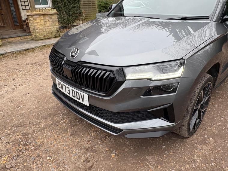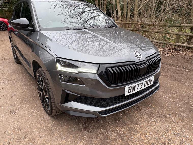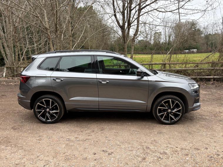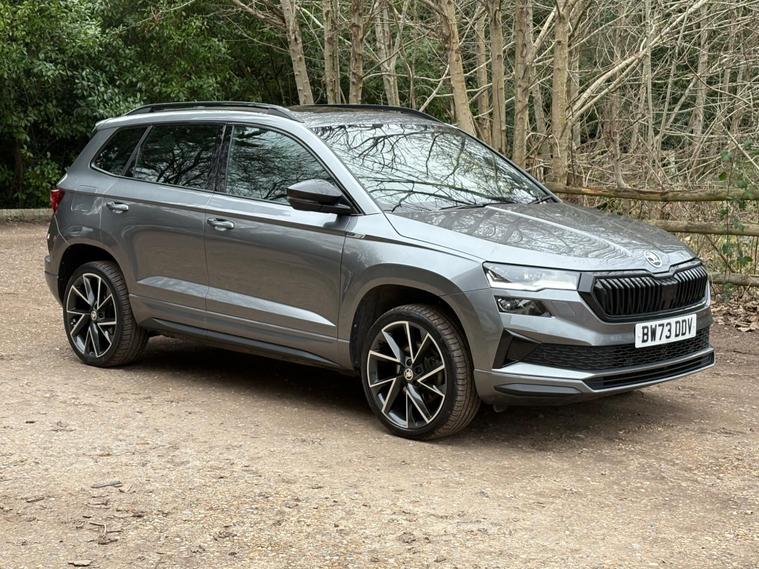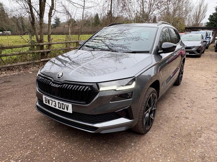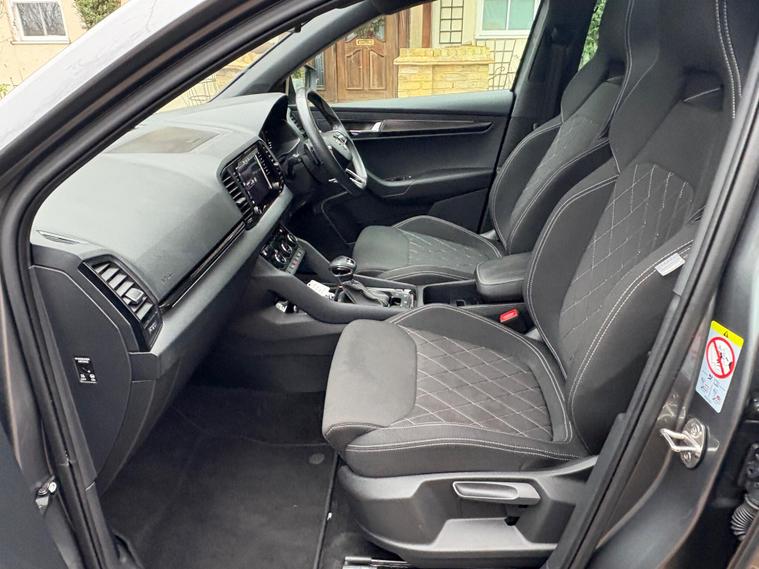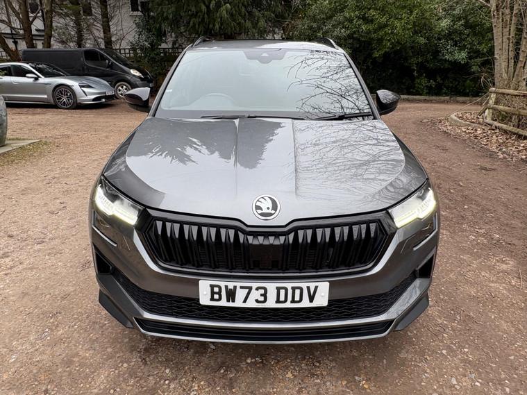 This 2024 Skoda Karoq TSI SportLine is a superb example, having had only one owner from new. This stylish SUV boasts a 1.5 litre Euro 6 petrol engine, offering a responsive drive. Inside, you'll find the Amundsen Package Plus, which includes convenient wireless phone charging, and the Light Package featuring LED headlights. Comfort is assured with dual zone climate control, and the Winter Pack ensures cosy journeys with heated seats.The SportLine trim enhances the Karoq's appeal, and this particular model comes equipped with a comprehensive Parking Package, including front and rear sensors and a rear camera, making manoeuvring effortless. You'll also appreciate the generous boot space, perfect for all your luggage. With an impressive 0-60mph acceleration time of just 8.7 seconds, this Karoq demonstrates a performance that sets it apart from many other vehicles in its class, offering a blend of practicality and dynamic capability..