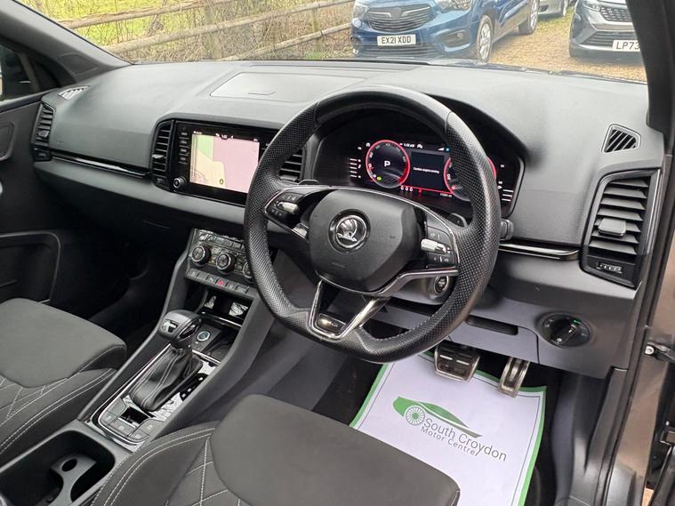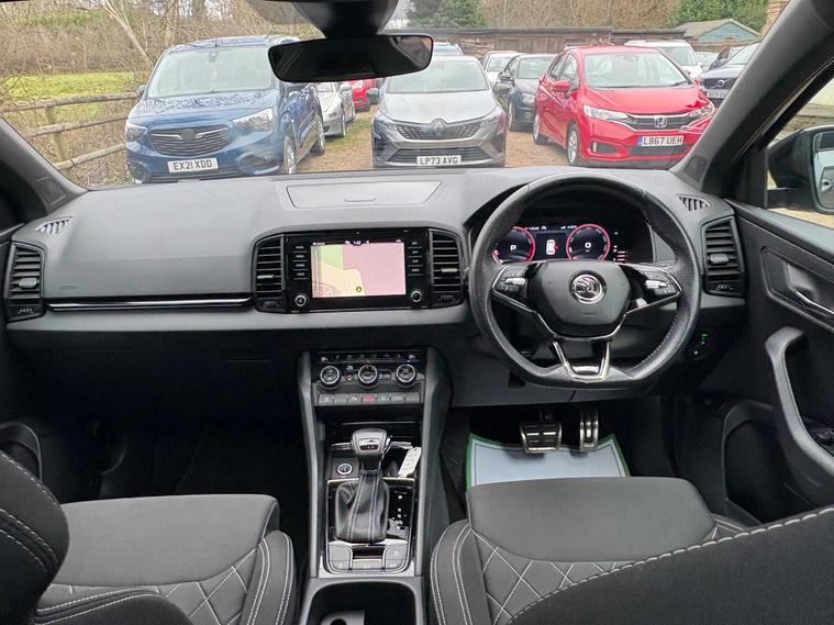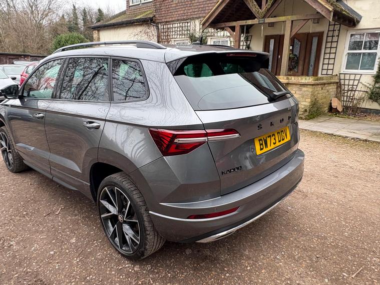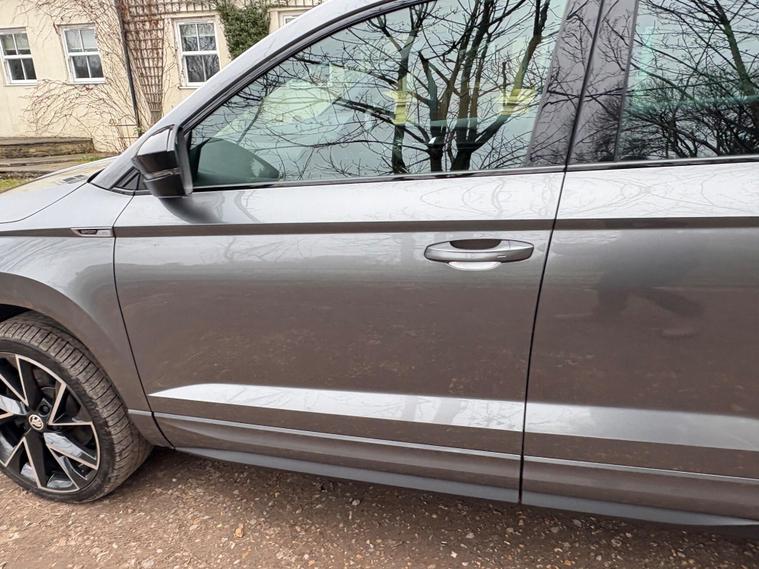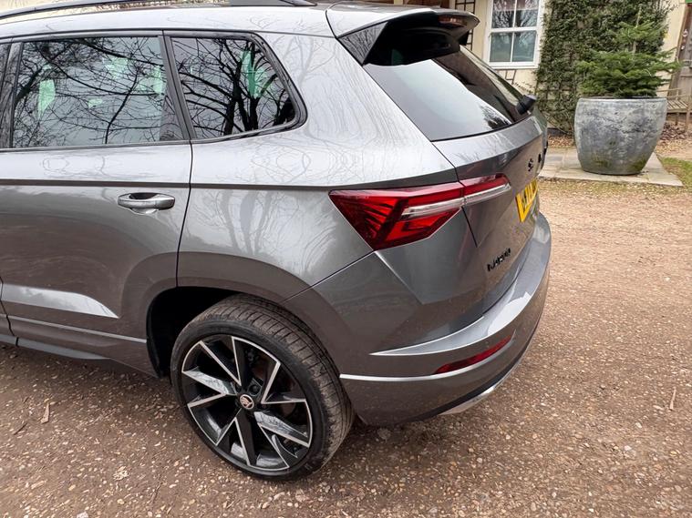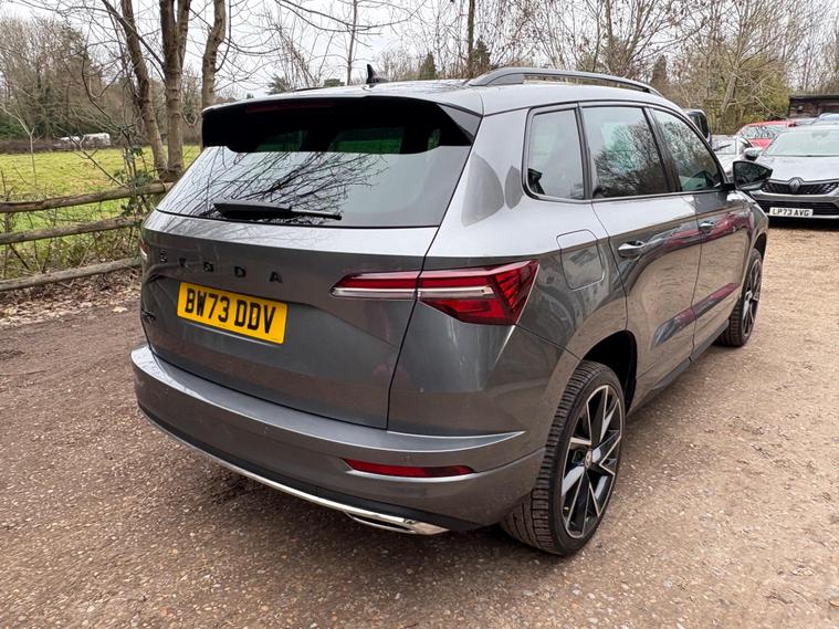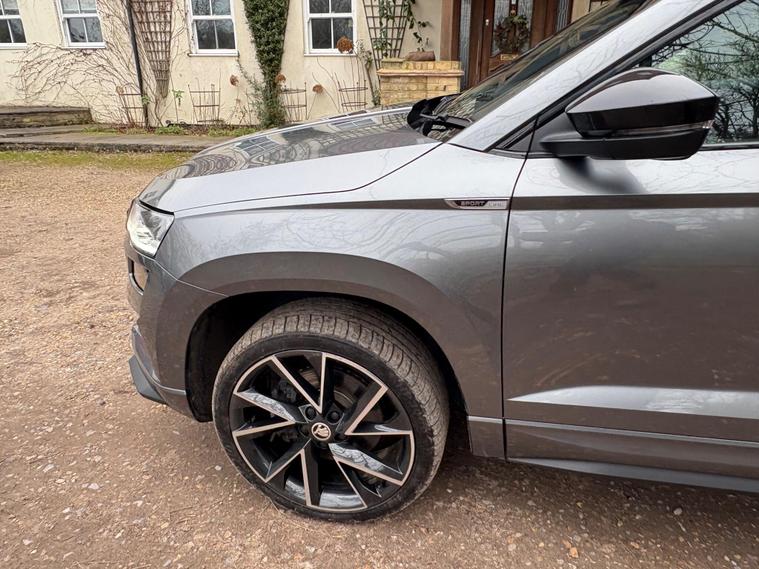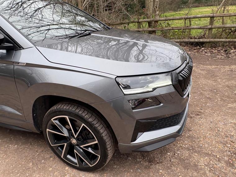 This 2024 Skoda Karoq TSI SportLine is a superb example, having had only one owner from new. This stylish SUV boasts a 1.5 litre Euro 6 petrol engine, offering a responsive drive. Inside, you'll find the Amundsen Package Plus, which includes convenient wireless phone charging, and the Light Package featuring LED headlights. Comfort is assured with dual zone climate control, and the Winter Pack ensures cosy journeys with heated seats.The SportLine trim enhances the Karoq's appeal, and this particular model comes equipped with a comprehensive Parking Package, including front and rear sensors and a rear camera, making manoeuvring effortless. You'll also appreciate the generous boot space, perfect for all your luggage. With an impressive 0-60mph acceleration time of just 8.7 seconds, this Karoq demonstrates a performance that sets it apart from many other vehicles in its class, offering a blend of practicality and dynamic capability..