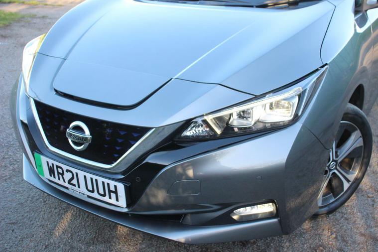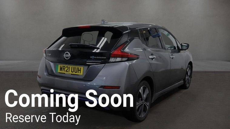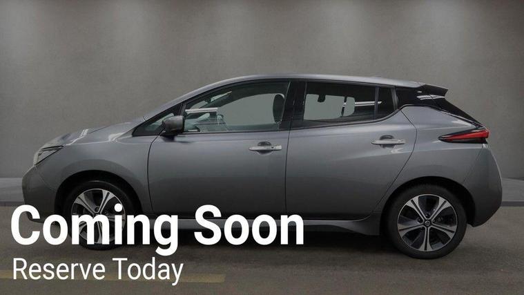 0% Deposit finance available, all cases considered, 2 Keys, Type 2 Cable included, Satnav, Privacy Glass, Half leather , This 2021 Nissan Leaf e+ Tekna offers an impressive electric driving experience with a substantial 62 kWh battery, providing a maximum range of 239 miles when new. As an electric vehicle, it represents a modern and efficient choice for your daily journeys. This particular model comes equipped with a comprehensive LED Pack, enhancing visibility with LED headlights, and includes a helpful Rear View Camera for easier parking. Safety is also a priority, with Blind Spot Warning technology and Intelligent Auto Headlights that feature a Follow Me Home function and automatic hazard lights. Inside, you'll find the comfort of Automatic Air Conditioning, ensuring a pleasant cabin temperature regardless of the weather.The Nissan Leaf e+ Tekna stands out with its remarkable performance, achieving 0-62mph in just 6.9 seconds, demonstrating its brisk acceleration. This electric model also boasts a generous boot space, offering ample room for your shopping or luggage. For convenience, a full charge at home using a 7kW charger takes approximately 11 hours and 30 minutes, while rapid charging at a public station can take you from empty to 80% in around 2 hours. These features collectively highlight the Leaf's capability and convenience, making it a compelling option in the electric vehicle market..
