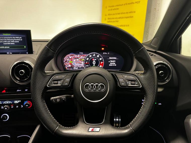 WE ARE PLEASED TO OFFER THIS 2019 / 19 REG AUDI S3 2.0 TFSI SPORTBACK S TRONIC QUATTRO EURO 6 5DR PRESENTED IN STUNNING WHITE WITH CONTRASTING FULL BLACK VIENNA LEATHER INTERIOR A COMPLETE FRESH ENGINE SERVICE HAS BEEN CARRIED OUT WHICH INCLUDED ENGINE OIL / OIL FILTER / CABIN FILTER AND THE AIR FILTER SUPPORTED BY A FULL AUDI SERVICE HISTORY AND 2 ORIGINAL KEYS ~ HUGE SPECIFICATION INCLUDED :ELECTRIC SLIDING PANORAMIC GLASS SUNROOF + BANG AND OLUFSEN SOUND SYSTEM + TECH PACK + WINTER PACK + BLIND SPOT ASSIST + ADAPTIVE CRUISE CONTROL + HEATED FRONT SEATS + SPORTS MODE + LAUNH CONTROL + SAT NAV + BLUETOOTH / MEDIA + 4WD + MAGNETIC RIDE + MULTI-FUNCTION LEATHER STEERING WHEEL + ADAPTIVE XENON HEADLIGHTS + LED TAIL LIGHTS + AUTOMATIC HEADLIGHTS + ELECTRIC FOLDING HEATED DOOR MIRRORS + ELECTRICALLY ADJUSTABLE DRIVERS SEAT + FRONT / REAR PARKING SENSORS + REVERSE PARK CAMERA + DUAL CLIMATE CONTROL + INFO SCREEN + DIS + DYNAMIC MODE; WE ARE A FAMILY RUN BUSINESS AND HAVE BEEN ESTABLISHED SINCE 2000 + WE HAVE OVER 2 DECADES OF MOTOR TRADE EXPERIENCE + BUY WITH COMPLETE CONFIDENCE AND PEACE OF MIND + PLEASE FEEL FREE TO READ OUR REVIEWS. THIS IS A TRULY REMARKABLE VEHICLE THAT COMBINES LUXURY, PERFORMANCE AND ADVANCED TECHNOLOGY IN ONE PACKAGE DON'T MISS OUT! 6 MONTHS WARRENTY + 12 MONTHS AA BREAKDOWN COVER + IMPORTED FROM JAPAN + LOW RATE FINANCE AVAILABLE + DELIVERY AVAILABLE + P/X WELCOME + PLEASE CALL FOR MORE INFORMATION. £99 DEPOSIT TO SECURE ANY CAR. PLEASE SEE OUR WEBSITE TO VIEW OUR EXTENSIVE RANGE OF QUALITY HAND PICKED USED VEHICLES. WE ARE OPEN 9-6 MONDAY-SATURDAY AND 10-4 SUNDAYS. CALL 01274914048.