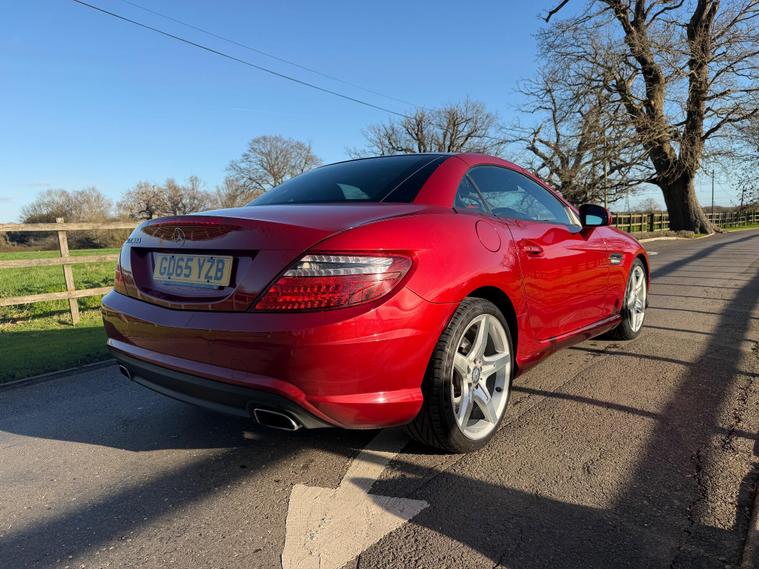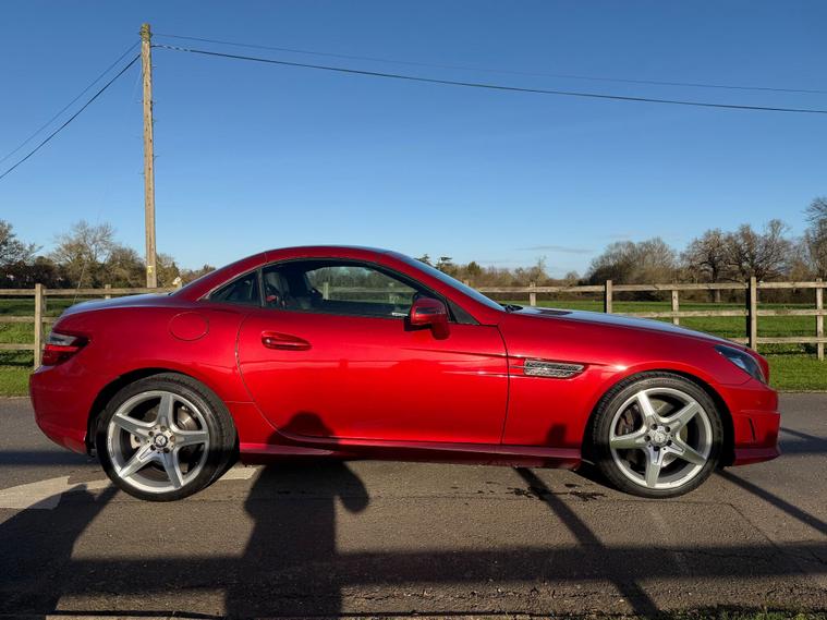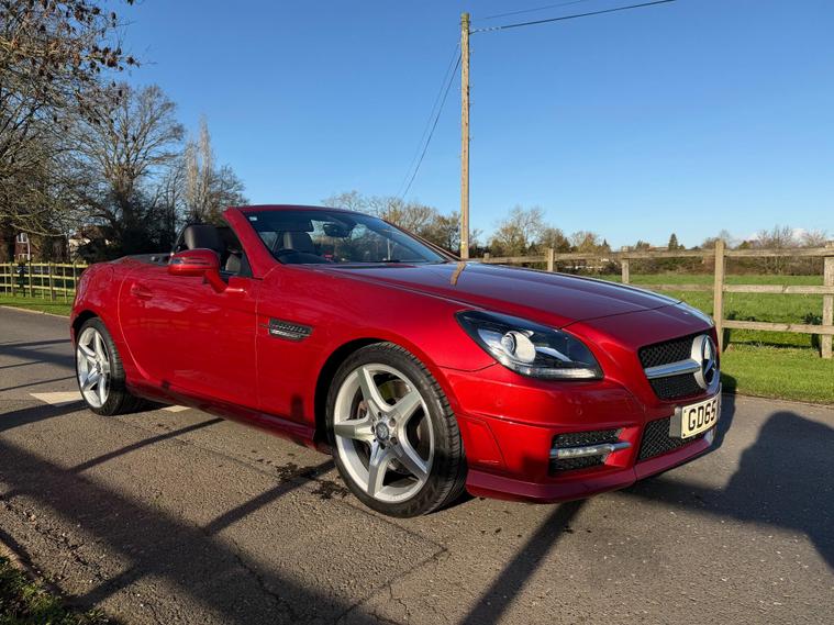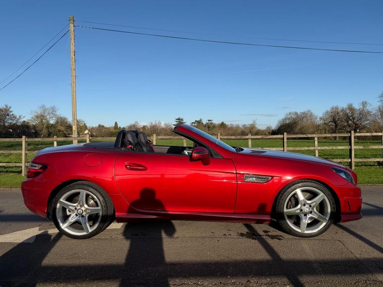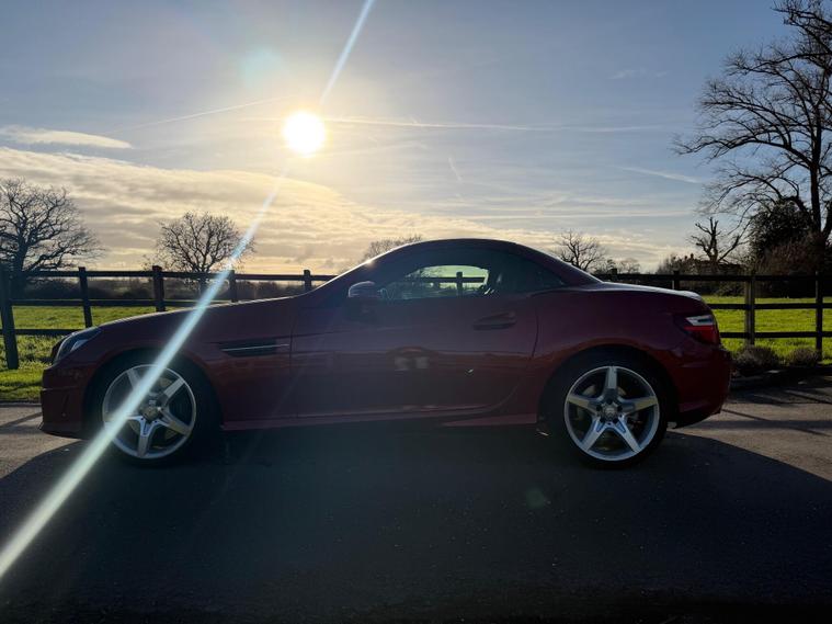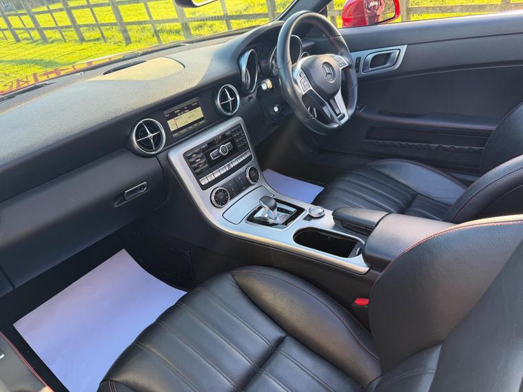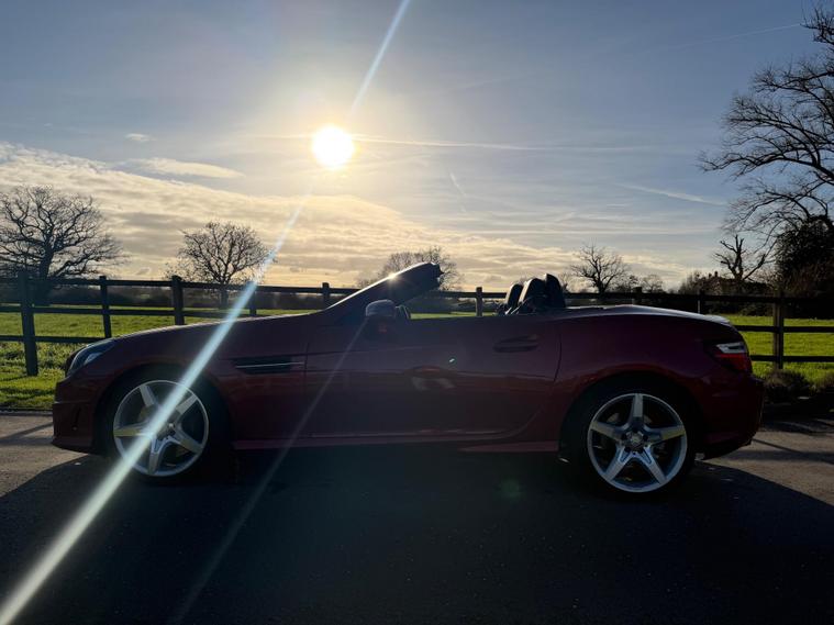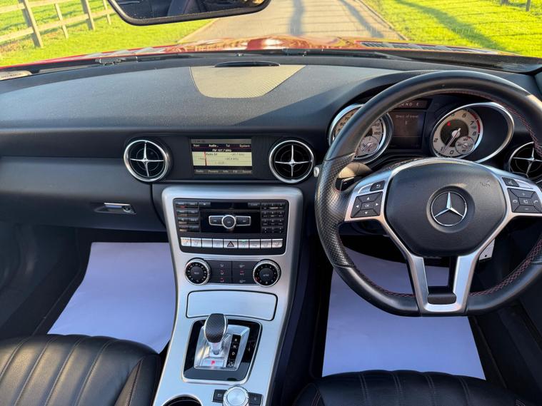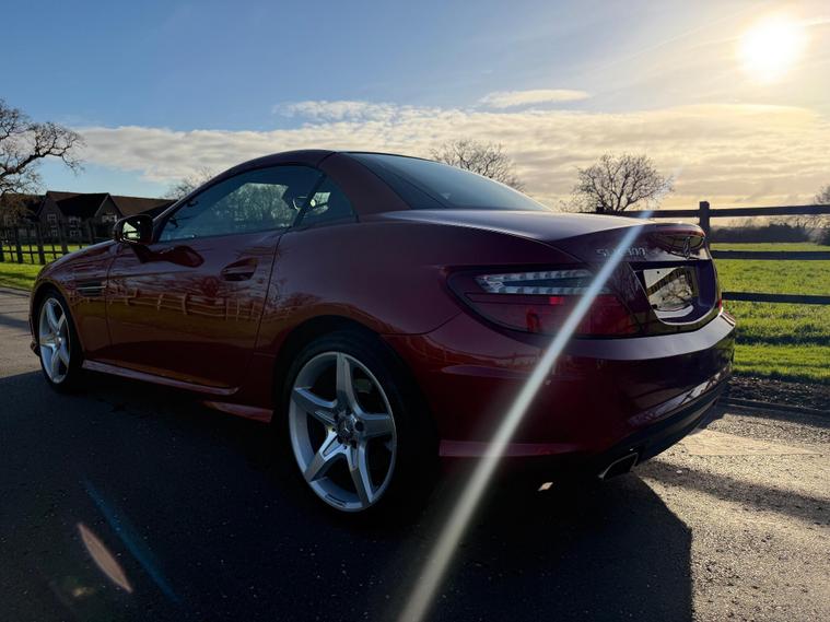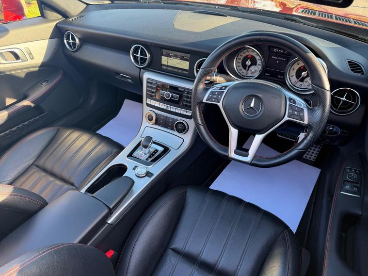 This 2015 Mercedes Benz SLK300 AMG Sport presents an exceptional opportunity with its remarkably low mileage of just 40, 000 miles. This particular SLK300 AMG Sport, finished in the AMG Sport trim, is equipped with a responsive 2.0 litre petrol engine and meets Euro 6 emissions standards. Notable features include Headlamp Assist for automatic activation of headlights, a Bluetooth interface for hands-free telephone calls, and air conditioning to ensure a comfortable cabin environment.The performance of this SLK300 AMG Sport is further enhanced by its impressive acceleration, reaching 0-62mph in a swift 5.8 seconds, indicating a dynamic driving experience. Its fuel economy is also a significant advantage, achieving up to 47 miles per gallon, which is a strong figure for its class. Furthermore, the vehicle boasts low CO2 emissions, demonstrating its efficiency and environmental consideration compared to similar vehicles..