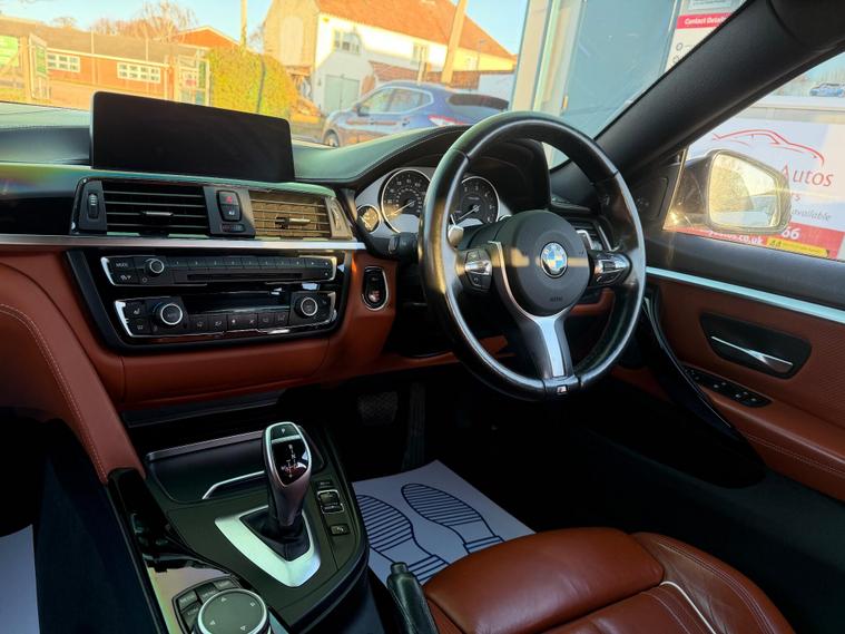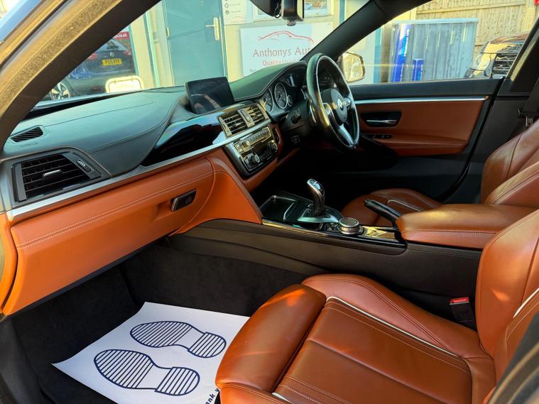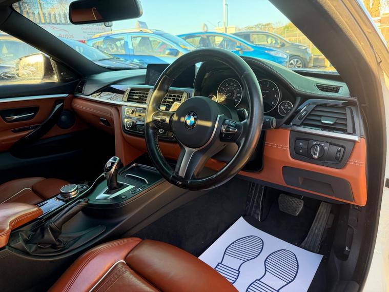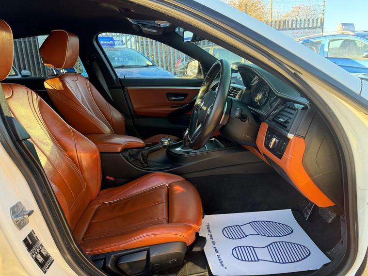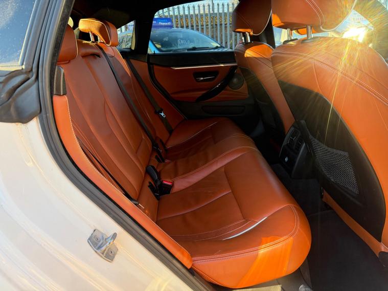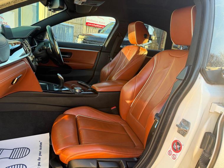 *** NEW IN***BMW 4 Series Gran Coupe 2.0 420d M Sport Auto Euro 6 (s/s) 5dr in White with Stunning Individual Nutmeg Leather interior. This top of the range car is in excellent condition throughout with a Full BMW Service history. The 2.0 Diesel engine produces 190 BHP and coupled to an 8 Speed ZF semi-auto gearbox produces a very comfortable and sporty drive. Comes with a NEW MOT and a 6 month WARRANTY. Excellent Condition both inside and out. This is a pet free, non smoker car. Specification includes: Full leather seats, Heated, Sat Nav, DAB Digital Radio, 4 x electric windows, Dual climate control, height adjustable driver and passenger seat, rain sensor, Hands Free Bluetooth Phone, auto lights, remote central locking, Alarm, immobiliser, dual AC, USB, AUX port, driver information centre, auto dipping rear view mirrors, Isofix, alarm, Leather-covered steering wheel, trip computer, third brake light, traction control, load cover, front fog fights, headlight washers and much more. All vehicles come with a pre-delivery inspection. 6 MONTH warranty included with additional comprehensive warranties for 2 and 3 years warranty upgrades available. All Major Cards Accepted. All Part Exchange Welcome. ***LOW RATE FINANCE AVAILABLE***. Call today to view and drive the amazing gran coupe!.