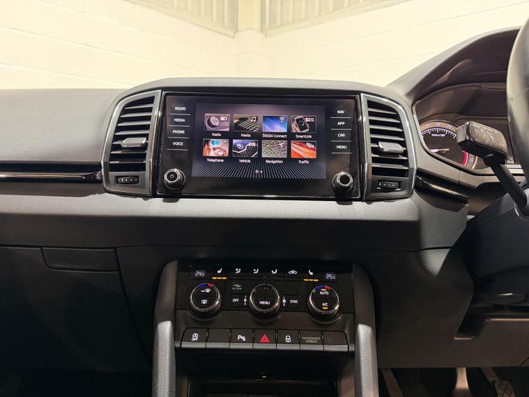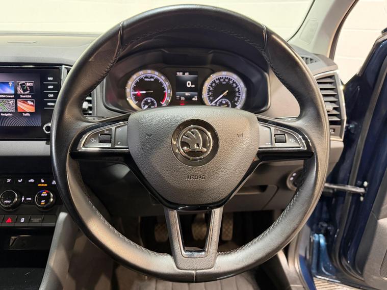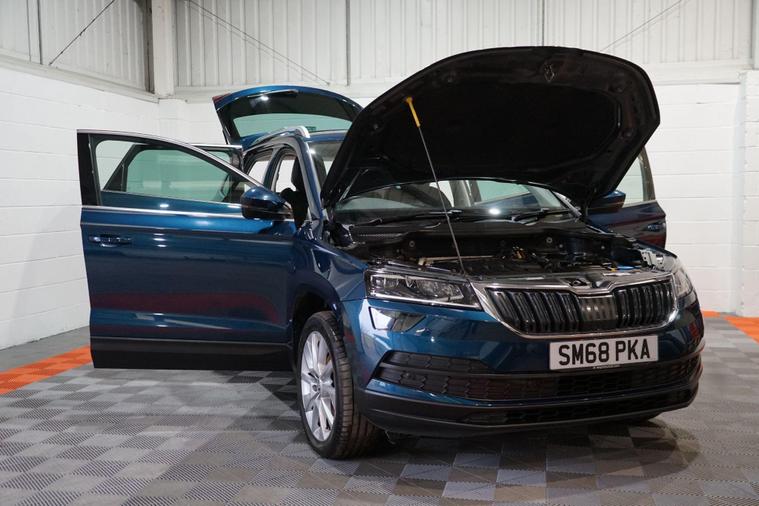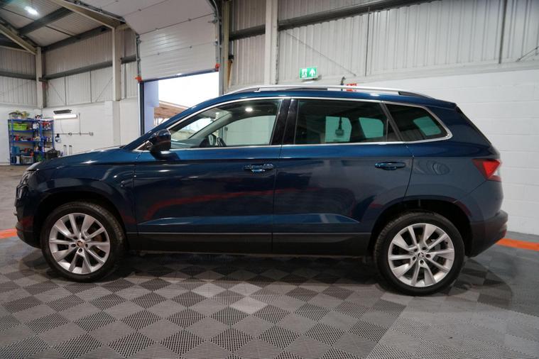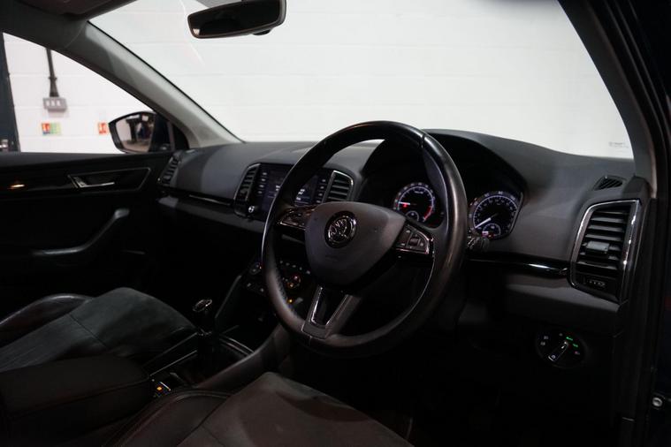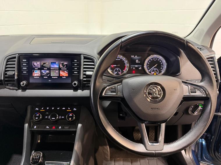We are pleased to present this Skoda Karoq 1.6 TDI SE L Euro 6 (s/s) 5dr, finished in attractive Petrol Blue metallic. Combining stylish SUV design with excellent practicality and efficiency, the Karoq is an ideal choice for families and drivers seeking comfort, space, and reliability.Powered by a refined and economical 1.6-litre TDI diesel engine, this Euro 6 compliant model delivers strong fuel efficiency and smooth performance, making it well suited to both urban driving and longer motorway journeys. The stop/start system helps maximise economy while keeping running costs low.The SE L specification offers a high level of comfort and technology. Inside, the cabin is thoughtfully designed with quality materials and a clean, modern layout. Features include satellite navigation, touchscreen infotainment system, smartphone connectivity via Apple CarPlay and Android Auto, Bluetooth, DAB radio, dual-zone climate control, cruise control, and rear parking sensors.Practicality is a key strength of the Karoq, with generous interior space for both passengers and luggage. The well-shaped boot offers excellent capacity, ideal for family use, holidays, or everyday errands, while the flexible rear seating allows the interior to adapt easily to your needs.Externally, the Petrol Blue metallic paintwork complements the Karoq’s smart, confident styling, giving it a refined yet robust road presence. Safety features include multiple airbags, stability control, and a range of driver assistance systems designed to provide reassurance on every journey.With its blend of comfort, efficiency, and versatility, this Skoda Karoq 1.6 TDI SE L represents a superb opportunity to own a practical and well-equipped SUV that is easy to live with and enjoyable to drive..