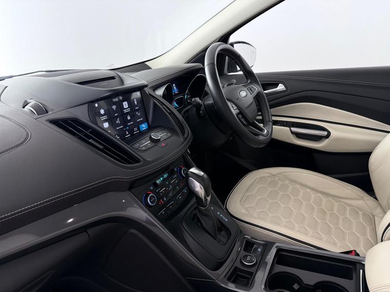 Our Ford Kuga is finished in Grey. This Kuga comes with a great specification including features such as 18 Inch Alloy Wheels, Electric Folding Mirrors, Front and Rear Electric Windows, Heated Windscreen, Privacy Glass, Roof Rails, Air Conditioning, Apple Carplay, Bluetooth, DAB Radio, Multi-Function Steering Wheel, Paddle Shift, Park Assist, Parking Sensors, Reverse Camera, Satellite Navigation, Speed Limiter, Upgraded Sound System - Sony, USB, Ivory Leather Trim, Central Armrest, Cup Holders, Electric Memory Seats, Electric Tailgate, Folding Rear Seats, Heated Seats, Rear Central Armrest, ISOFIX, LED Daytime Running Lights, LED Tailights, Remote Central Locking, Xenon Headlights..