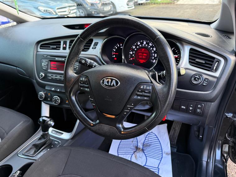 BLACK, SERVICE HISTORY, FINANCE AVAILABLE, PARKING SENSORS, SPARE KEY, PRIVACY GLASS, START/STOP, CRUISE CONTROL SUPERB DRIVE, VERY ECONOMICAL, ALLOY WHEELS, CLIMATE CONTROL, This 2015 Kia Ceed CRDi 2 presents an exceptional opportunity with its remarkably low mileage of just 43, 279 miles, especially for a vehicle of its age. This well maintained example boasts a clear vehicle history check and an MOT valid until September 2026, offering peace of mind for its next owner. Under the bonnet, you'll find an efficient 1.6 litre diesel engine, paired with the popular 2 trim level. This Ceed also comes equipped with essential features including air conditioning for comfortable journeys, rear parking sensors to aid manoeuvring, and Bluetooth connectivity for both hands free calls and music streaming.The appeal of this Kia Ceed is further enhanced by its low insurance group, suggesting that running costs could be more affordable compared to similar vehicles. The combination of its frugal diesel engine, comprehensive MOT, and desirable features like Bluetooth and parking sensors makes this a practical and well equipped choice for everyday driving. Its low mileage is a significant highlight, indicating less wear and tear and potentially a longer service life ahead..