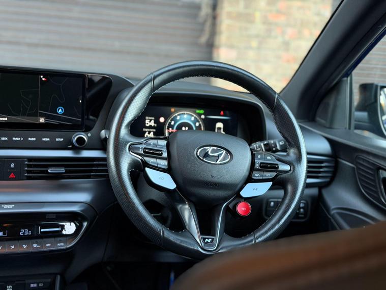 We are delighted to offer this Hyundai i20 N 1.6 Petrol, a true driver focused hot hatch that delivers outstanding performance while remaining practical for everyday use. Supplied with full service history and 2 keys, this example is finished in the iconic Thunder Blue with red accents, rear spoiler, and N styling throughout, giving it an aggressive and unmistakable road presence.Under the bonnet sits Hyundai’s 1.6 turbocharged petrol engine producing around 204 PS, paired with a performance focused setup that delivers 0–62 mph in approximately 6.2 seconds and a top speed of around 143 mph. The i20 N is renowned for its sharp handling, mechanical limited slip differential, rev matching system, and selectable N drive modes, making it one of the most engaging hot hatches in its class.Inside, the sporty cabin features N cloth sports seats which are heated, along with a heated steering wheel for added comfort. The digital cockpit displays performance data and driving information clearly, while the wide touchscreen infotainment system provides Bluetooth audio, handsfree calling, DAB, FM and AM radio. The multi functional steering wheel gives quick access to drive modes and N settings, allowing you to tailor the driving experience to your preference.This i20 N is also well equipped for daily use, offering a reversing camera, front and rear parking sensors, and a range of driver assistance features. Whether you are enjoying spirited driving on a country road or commuting day to day, this car delivers excitement without compromise.At Fitzroy Motor Co, we pride ourselves on providing exceptional service and unbeatable value. All our vehicles are hand picked and purchased directly from private customers. Every vehicle is HPI clear, with a complimentary HPI report provided for your peace of mind. Each car undergoes a thorough inspection and is prepared for same day pickup. If a vehicle has six months or less MOT remaining, we will provide a fresh 12 month MOT for added reassurance.Ordering your next car is simple, with nationwide delivery available from just £149..