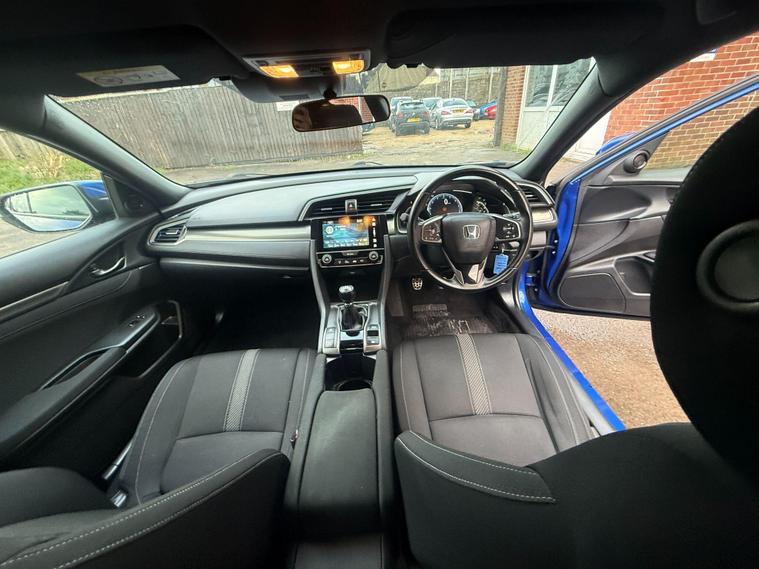 This 2019 Honda Civic VTEC Turbo SR boasts a clear vehicle history, offering you peace of mind. This well maintained example features a responsive 1.0L petrol engine, meeting Euro 6 emissions standards. Inside, you'll find the advanced Honda CONNECT system with GARMIN Navigation, compatible with Android Auto, and Bluetooth Hands Free Telephone for seamless connectivity. For added convenience and safety, it includes Intelligent Adaptive Cruise Control and a rear parking camera.The Civic VTEC Turbo SR stands out with its generous boot space, providing ample room for all your needs. Its low CO2 emissions also highlight its efficiency, making it a more economical choice compared to many similar vehicles. This combination of practicality, technology, and efficiency makes this Honda Civic a compelling option..