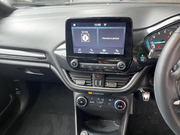 This 2019 Ford Fiesta ST-Line offers a dynamic driving experience with its responsive 1.0L petrol engine. As a Euro 6 compliant vehicle, it meets modern emission standards. This particular model comes equipped with a manual air conditioning system to keep you comfortable, and the Ford SYNC system featuring a touchscreen, DAB radio, Apple CarPlay, and Android Auto, ensuring seamless connectivity and entertainment on your journeys. The NCAP Pack, which includes automatic on-off headlights, adds an extra layer of safety and convenience.The Ford Fiesta ST-Line is designed to impress, and this 2019 model is no exception. Its acceleration from 0 to 62mph in just 9.0 seconds demonstrates its spirited performance, setting it apart from many other vehicles in its class. This combination of engaging performance, modern technology, and practical features makes this Fiesta a compelling choice for those seeking a well rounded and enjoyable car..