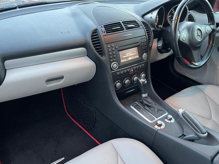 Discover this 2010 Mercedes Benz SLK200K, a stylish convertible that offers a refined driving experience. This particular model boasts a 1.8 litre petrol engine, paired with a smooth automatic transmission. Inside, you'll find comfortable black leather upholstery and heated front seats, perfect for any weather. For added convenience, it features the Parktronic system with rear parking sensors to assist with manoeuvring.Experience the joy of open top motoring year round with the innovative Airscarf neck level heating system, ensuring warmth even on cooler days. The remote control for the roof operation is conveniently integrated into the key, allowing for effortless deployment and retraction of the convertible roof. These features combine to make this SLK200K a truly desirable and well equipped convertible..