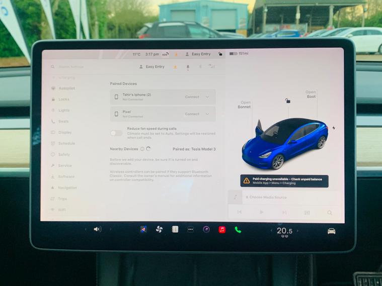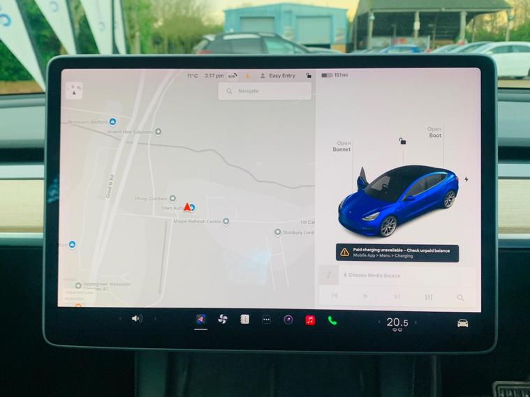 This 2020 Tesla Model 3 Long Range boasts a clear vehicle history and has had only one owner, offering peace of mind for its next custodian. As a fully electric vehicle with Four Wheel Drive, it combines efficiency with assured traction. The Long Range variant features a substantial 78 kWh battery, providing an impressive maximum range of 360 miles when new. Charging is convenient, with a full charge at home taking approximately 12 hours using a 7kW charger, while rapid public charging can replenish the battery from empty to 80% in just 26 minutes. Notable features include Keyless Go for effortless entry and starting, a Park Assist Camera system with front camera assistance, and a Fixed Panoramic Glass Roof that floods the cabin with light. For comfort, it offers 2 Zone Climate Control, and for enhanced safety, Blind Spot Information is integrated. The highlights of this Tesla Model 3 Long Range demonstrate its superior capabilities. The exceptional 360 mile maximum range at new significantly surpasses many other electric vehicles, meaning fewer stops on longer journeys. Furthermore, the generous large boot space provides ample room for luggage, shopping, or equipment, making it a practical choice for everyday use and adventures alike. These aspects, combined with the advanced technology and electric powertrain, position this Model 3 as a compelling option for those seeking an efficient, capable, and well equipped electric car..
