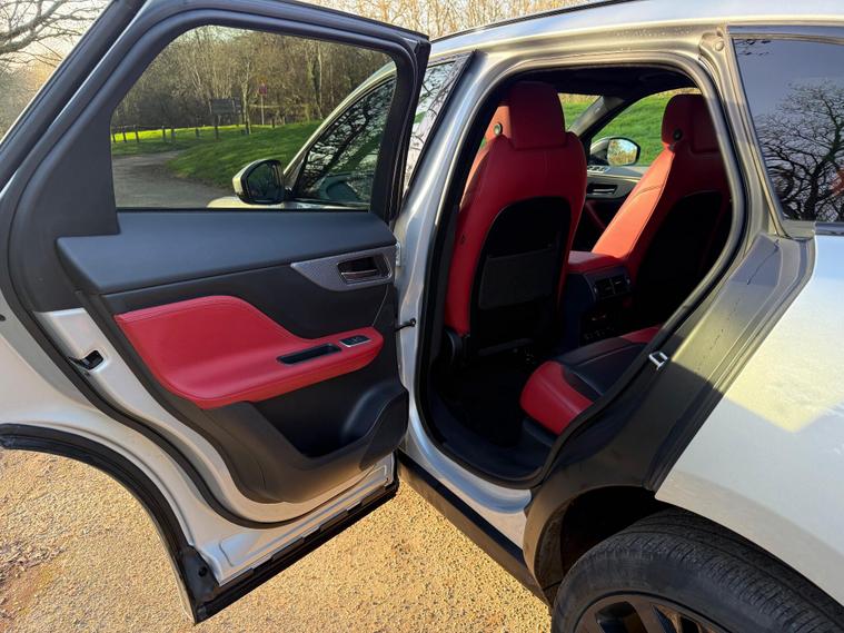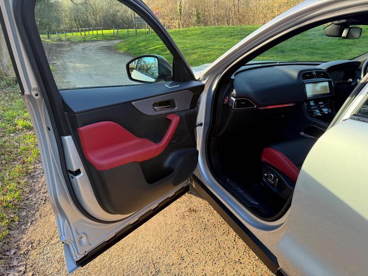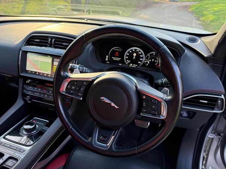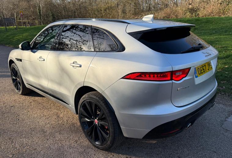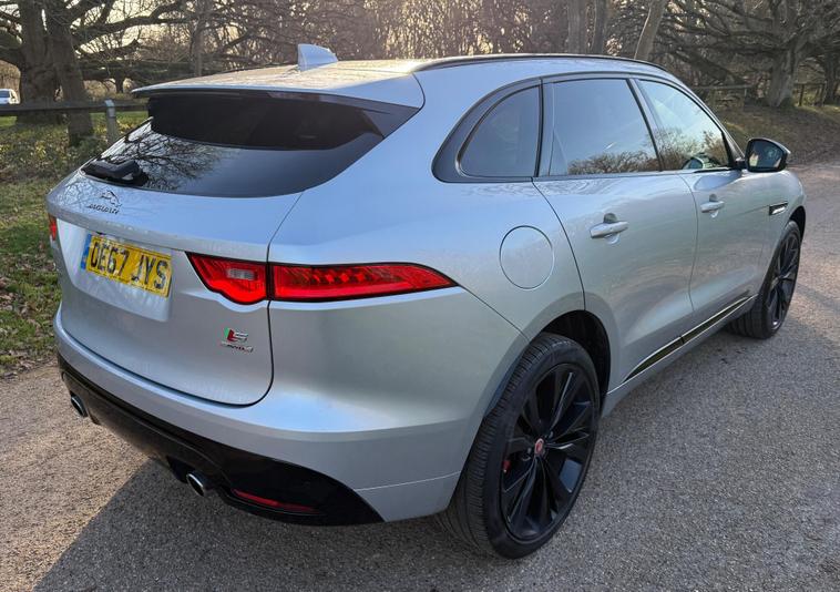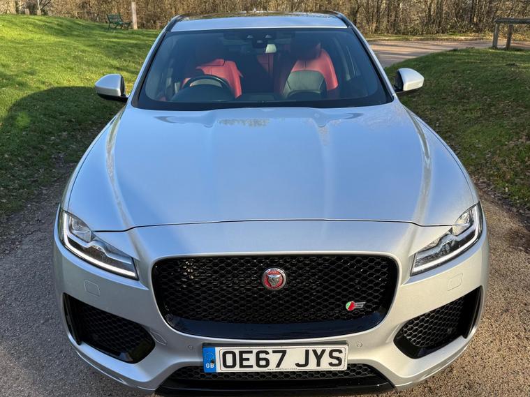 JAGUAR F-PACE D300 V6 S EURO 6 ULEZ COMPLIANT, 2017 ''67'' REG, FINISHED IN SPARKLING SILVER METALLIC, FULL UP TO DATE SERVICE HISTORY 7 SERVICES IN TOTAL INCLUDING CAMBELT REPLACED AT 77K, JUST BEEN SERVICED AND A NEW 12 MONTHS MOT FOR COMPLETE PIECE OF MIND, 2 KEYS AND FULL BOOK PACK INC, HUGE SPEC WITH LOTS OF ADDED OPTION'S, TWO TONE RED/BLACK INTERIOR, FULL ELECTRIC MEMORY SEATS, HEATED FRONT AND REAR SEATS AND STEERING WHEEL, FULL DIGITAL DASH, HEATED WINDSCREEN, 22'' BLACK ALLOYS, DYNAMIC SUSPENSION AND DRIVING MODES, PAN ROOF, GESTURE BOOT, MERIDIAN SOUND, SIGNATURE LED HEADLIGHTS, BLACK PACK, PRIVACY GLASS, CRUISE, METAL KICK PLATES AND PEDALS, REVERSE CAMERA'S, TOW PACK, SPEC LIST GOES ON AND ON, HARD TO FIND IN THIS CONDITION WITH THIS HISTORY AND SPEC.This 2017 Jaguar F-PACE D300 V6 S offers a compelling blend of performance and luxury, boasting a powerful 3.0L Diesel engine and a sophisticated Four Wheel Drive system. As a Euro 6 compliant vehicle, it meets stringent emission standards. The F-PACE is equipped with the advanced InControl Touch Pro Pack, featuring a Meridian Digital Surround Sound System delivering 825w of immersive audio. For enhanced driving comfort and safety, it includes Adaptive Cruise Control with Forward Alert, Queue Assist, Intelligent Emergency Braking, and Follow Mode. The striking 22in Alloy Wheels in a Gloss Black Finish with Satin Black Inserts, part of the Black Pack S, complement the vehicle's assertive stance. Inside, Illuminated Metal Treadplates with Jaguar Script add a touch of premium detail.The Jaguar F-PACE D300 V6 S excels in several key areas, demonstrating its superiority over comparable vehicles. Its impressive acceleration, achieving 0-60mph in just 5.8 seconds, provides a dynamic driving experience. The vehicle also benefits from a low insurance group, making ownership more affordable. Furthermore, the generous boot space ensures practicality for everyday use and longer journeys. With a substantial towing weight of 2400 kg, this F-PACE is also well suited for those needing to tow trailers or caravans..