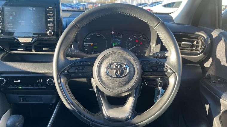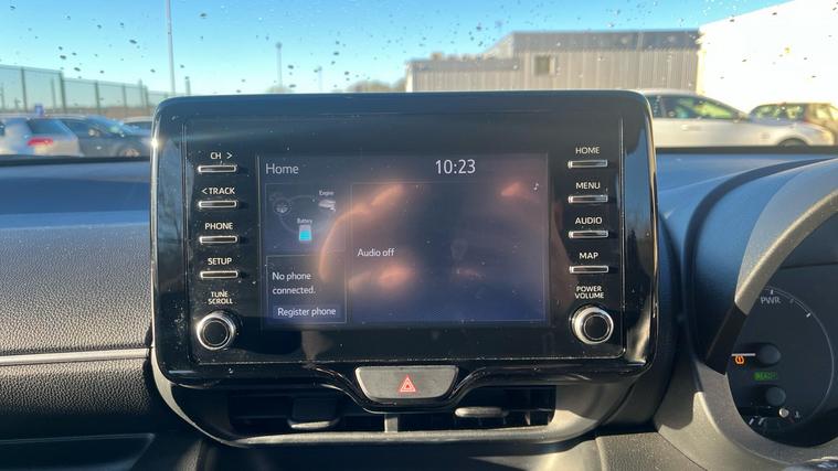This 2022 Toyota Yaris VVT-h Icon is a Toyota manufacturer approved vehicle, boasting a full dealership service history and having had only one owner from new. This Euro 6 compliant model features a 1.5L petrol hybrid engine and comes with a 12 month warranty for your peace of mind. Notable features include Toyota Safety Sense 2 with adaptive cruise control, automatic air conditioning with climate control, and smartphone integration for Apple CarPlay and Android Auto. You'll also benefit from automatic headlights and a reversing camera for easier parking.The Yaris Icon stands out with its impressive fuel economy, achieving a remarkable 69 mpg, which indicates it is more economical than many similar vehicles. Its low CO2 emissions and low insurance group further highlight its cost effectiveness, making it a sensible choice for everyday driving..