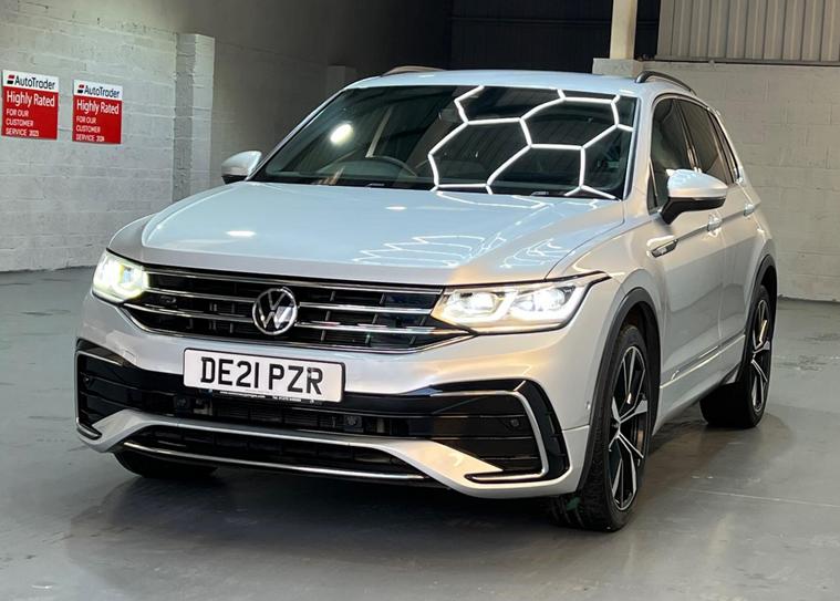 This 2021 Volkswagen Tiguan TSI R-Line boasts a full service history and has had only one owner, ensuring excellent provenance. This Euro 6 compliant model features a responsive 1.5 litre petrol engine and comes with a 6 month warranty for your peace of mind. Its MOT is valid until April 2026, and a clear vehicle history check confirms its sound condition. The Tiguan R-Line is equipped with the desirable Assistance Pack Plus, including Blind Spot Assistance and front and rear parking sensors, alongside App-Connect for seamless Android Auto and Apple CarPlay integration. Enjoy effortless journeys with Adaptive Cruise Control and Keyless Entry, all managed through the Discover Media Navigation Infotainment System with Bluetooth connectivity.The Tiguan R-Line offers impressive performance, accelerating from 0-62mph in just 9.2 seconds, demonstrating its capability. This particular model stands out with its generous boot space, providing ample room for all your needs. The inclusion of features like Predictive Cruise Control and the advanced infotainment system with streaming and internet capabilities further enhance its appeal, setting it apart from other vehicles in its class and offering a superior driving experience.X.