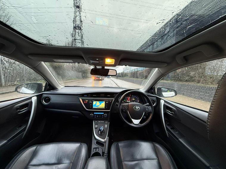 This 2015 Toyota Auris VVT-h Excel presents a superb ownership proposition, having been meticulously maintained by a single owner from new and boasting a clear vehicle history check. Under the bonnet, you'll find an efficient 1.8L Petrol Hybrid engine, offering a smooth and economical driving experience. The Excel trim level ensures a premium feel, enhanced by the striking Katori Black leather interior. Navigating your journeys is made effortless with the integrated Toyota Touch and Go Navigation System, while the convenience of Smart Entry and Smart Start, including keyless entry, adds a touch of modern sophistication.Further elevating this Auris is the expansive Skyview Panoramic Roof, which includes a fixed panoramic sunroof, bathing the cabin in natural light. The inclusion of the Protection Pack provides added peace of mind for everyday use. These features, combined with its low insurance group, clearly set this particular Toyota Auris apart from others on the market, offering a compelling blend of comfort, technology, and value for its next owner..