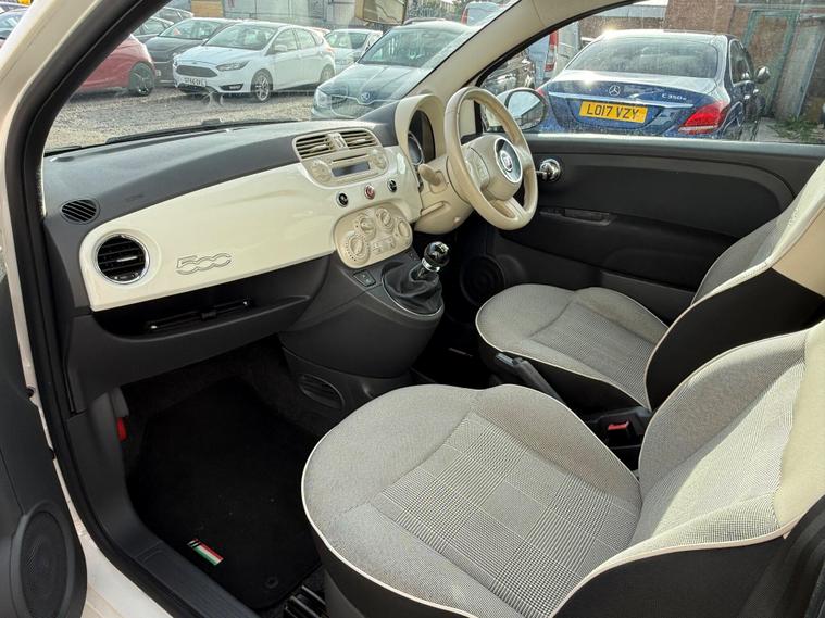 This 2015 Fiat 500 Lounge is a superb example of a well maintained city car. Powered by an efficient 1.2L Petrol engine and meeting Euro 6 emissions standards, this model offers a delightful driving experience. Inside, you'll find comfortable seating with passenger memory function, a fixed glass roof that floods the cabin with light, and the convenient Blue&Me hands free system with a USB port for all your connectivity needs. The Lounge trim also includes air conditioning to ensure your comfort in all weather.This Fiat 500 stands out with its impressive fuel economy, achieving an excellent 60 miles per gallon, which indicates it is more economical than many similar vehicles. Furthermore, its low CO2 emissions and low insurance group highlight its cost effectiveness for everyday use. These factors combine to make this Fiat 500 Lounge a smart and practical choice for navigating urban environments and beyond..