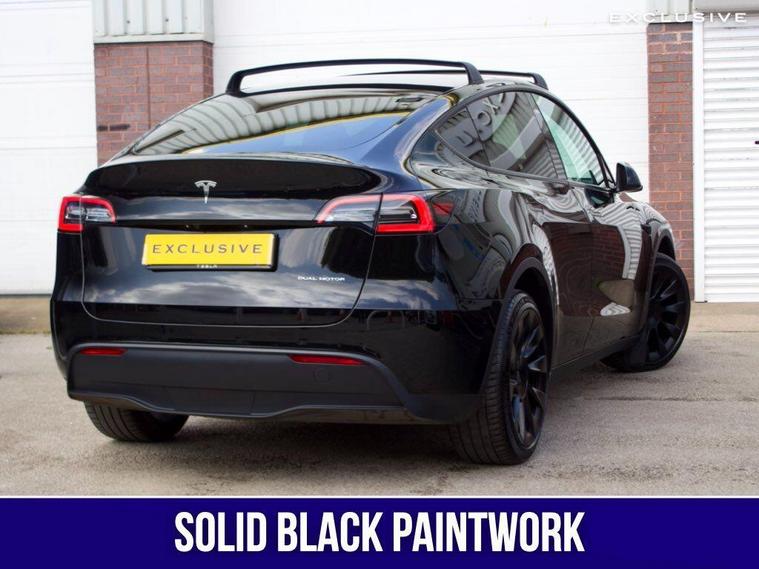 We are delighted to present this 74 plate, Tesla Model Y Long Range Dual Motor AWD benefitting from £3, 200 worth of optional extras such as: 20'' Induction Alloys and Solid Black Paintwork. With a list price of circa £55, 000, there is significant savings from new! ---|--- The 2024 Tesla Model Y also has additional benefits such as the Hardware 4 which includes improvements on the cameras and autopilot functionality.--|--Say hello to the Tesla Model Y, which should appeal to buyers looking for extra SUV practicality, with the capability of achieving c.331 miles WLTP driving range on a full charge and ability to achieve a staggering 0-60mph in just 4.8 seconds. -|-TESLA WARRANTY UNTIL 09/2028 AND BATTERY WARRANTY UNTIL 09/2032--|--The Model Y has an extensive specification including: autopilot, satellite navigation , surround cameras, panoramic roof, electric tailgate, heated front and rear seats, premium connectivity, premium leather, premium audio system, supercharger enable, and more.-|- Inside, the Model Y has the same minimalist interior, focused around a high-res 15-inch touchscreen in the middle of the dashboard. A taller roof means there's more space and headroom inside the Model Y, while its hatchback boot is much more useful for loading luggage or sports equipment.With a practical and reliable range, fast charging capability, plenty of space and user-friendly onboard technology, the Model Y will appeal to buyers who need to take care of the family or work basics, but who also want the curb appeal and badge kudos that Tesla provides. We think that owning this car is akin to owning an Apple product, simple yet brilliant in both form and function and seldom out of date thanks to its over the air updates. Yep. Instead of having to go to a dealer or service centre to get your car updated.*Other features and upgrades can be added from Tesla such asFull self driving Enhanced AutopilotTow bar****CAR AWAITING PHOTOGRAPHY - ACTUAL CAR DOES NOT HAVE ROOF RAILS***.