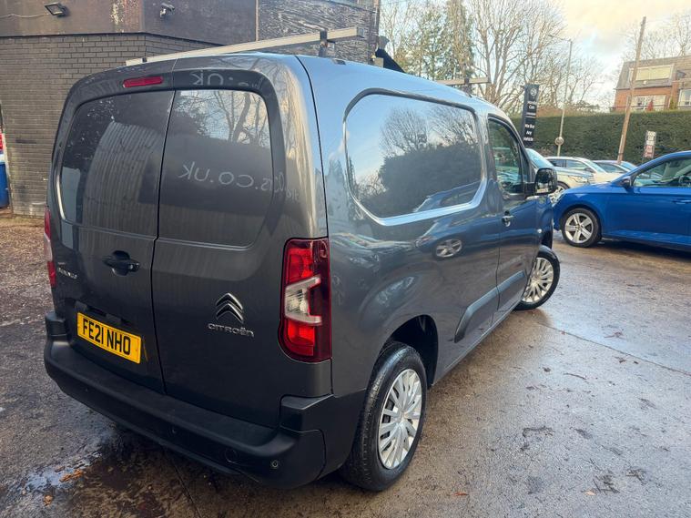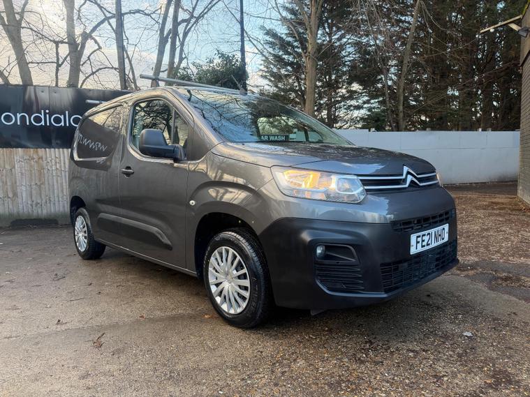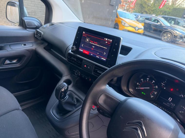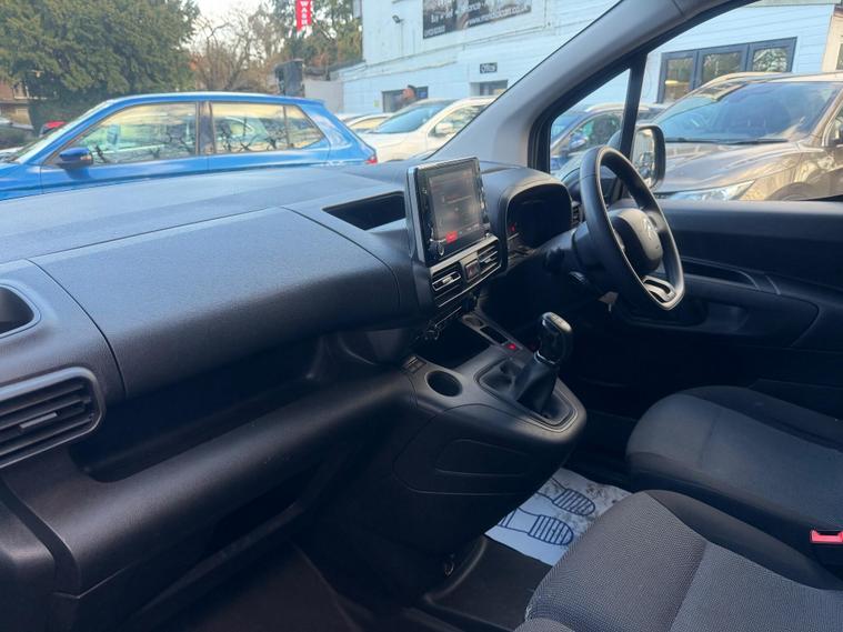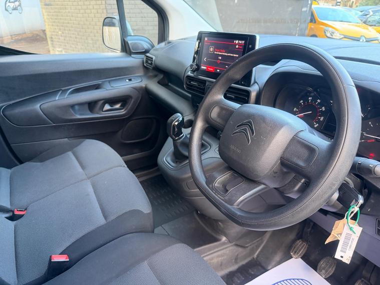 This 2021 Citroen Berlingo is a superb example, having had only one owner from new. It features a 1.5 litre BlueHDi diesel engine, meeting Euro 6 emissions standards, and is presented in the Enterprise M trim. This practical van comes equipped with height adjustable halogen headlights that automatically switch on, an 8 inch colour touchscreen with Citroen Connect DAB radio, Bluetooth handsfree, a USB socket and aux in jack, and air conditioning. For convenience and safety, it also includes rear parking sensors.The Berlingo offers a generous cargo volume of 3900 litres, making it ideal for a variety of business needs. Its low CO2 emissions and low insurance group indicate that this vehicle is more economical to run and insure than many similar vans on the market. This combination of practicality, efficiency, and desirable features makes it a compelling choice..