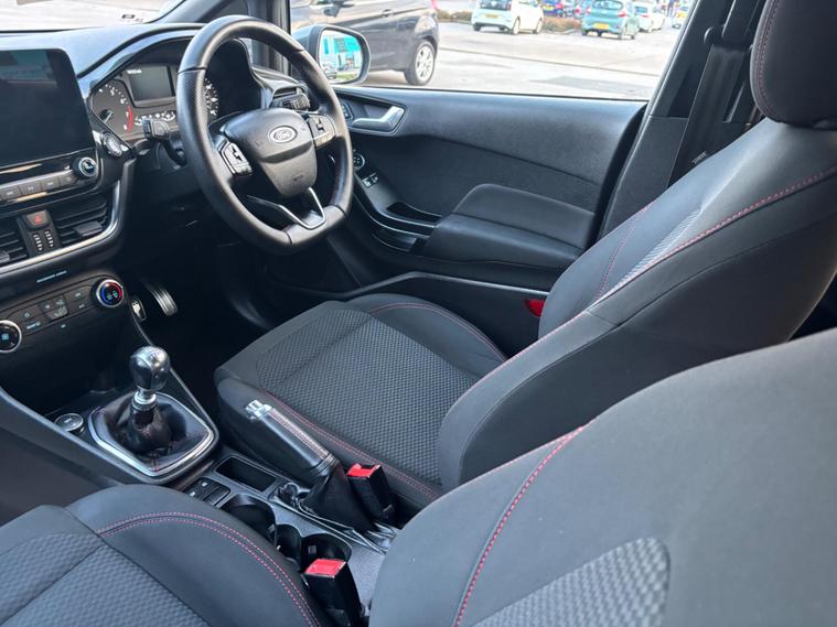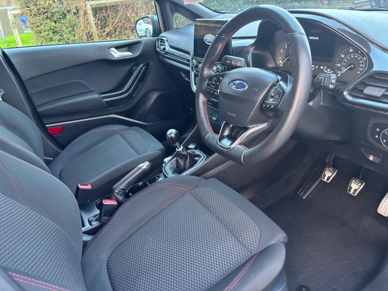 WE ARE PLEASED TO OFFER THIS HIGHLY DESIRABLE HIGH SPECIFICATION WELL MAINTAINED ECONOMICAL LOW INSURANCE RATED FORD FIESTA 1.0 T Ecoboost ST-LINE EURO SIX PETROL FIVE DOOR + FINISHED IN THE BEST COLOUR OF MAGNETIC GREY METALLIC PAINTWORK AND IS COMPLEMENTED WITH A BLACK CLOTH WITH RED STITCHING + ONLY 74, 810 MILES HAS BEEN COVERED IN TOTAL BY TWO OWNERS + LAST OWNER SINCE APRIL 2023 + SERVICE HISTORY + JUST BEEN FULLY SERVICED WHICH INCLUDED THE WETBELT / CAMBELT BEING RENEWED ON THE 18TH OF DECEMBER 2025 + 12 MONTHS MOT + OUTSTANDING CONDITION THROUGHOUT AND DRIVES SUPERB + 100 BHP MODEL + FULL ST-LINE SPECIFICATION WHICH INCLUDES APPLE AND ANDROID CAR PLAY / FULL ELECTRIC PACK WITH POWER FOLD DOOR MIRRORS / MULTI FUNCTION SPORTS STEERING WHEEL / FRONT SPORT SEATS / DAB TUNER / 17'' MULTI SPOKE ALLOY WHEELS FINISHED IN GLOSS BLACK / REAR PRIVACY GLASS / TOUCH SCREEN INFOTAINMENT SYSTEM / HILL START ASSIST AND MUCH MORE + HANDBOOK PACK + ANY TRIAL OR INSPECTION IS WELCOMED + HPI CLEAR WITH CERTIFICATE + SIX MONTHS NATIONWIDE WARRANTY IS INCLUDED + VIEWING IS ESSENTIAL TO APPRECIATE THIS TRULY CHERISHED MUCH SOUGHT AFTER EXAMPLE. We have been established in Baildon for over 20 years. All our vehicles are fully inspected, prepared and valeted. We are finance specialists. Part exchange is welcome. All major credit and debits accepted. Open 7 days. Our postcode is BD177EX..