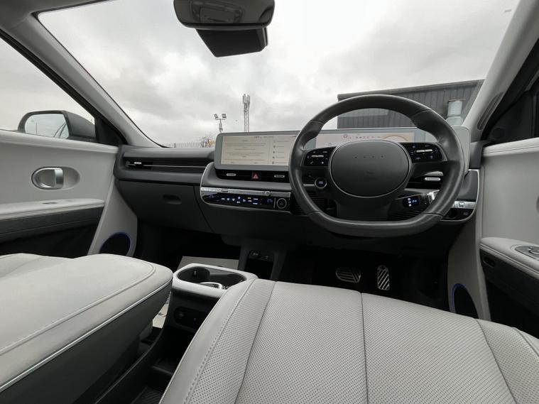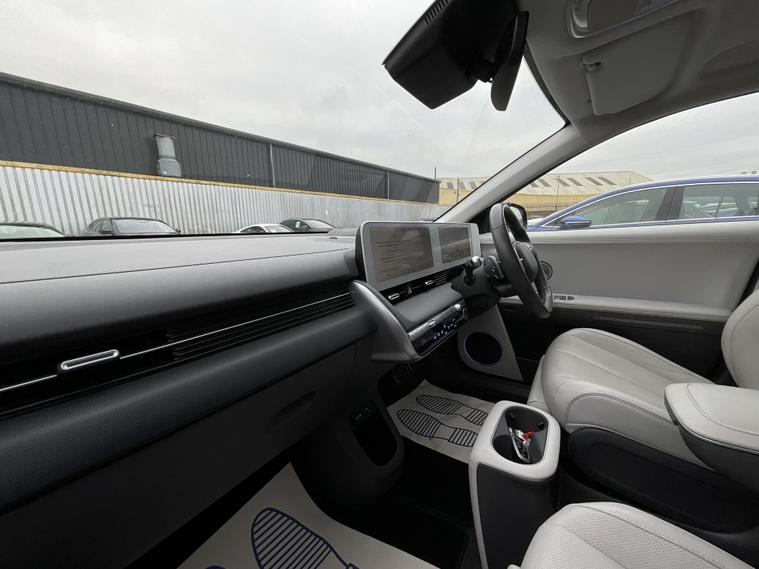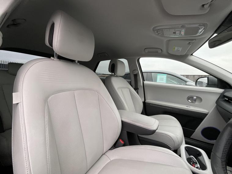 This 2022 Hyundai IONIQ 5 Ultimate is a superb example of electric motoring, boasting an MOT valid until November 2026 for your peace of mind. As an electric vehicle, it offers a smooth and quiet driving experience, powered by a substantial 77 kWh battery. This impressive battery provides a maximum range of 295 miles when new, meaning you can travel further on a single charge. Charging at home with a 7kW charger will take approximately 10 hours and 53 minutes for a full charge, while rapid public charging can take you from empty to 80% in as little as 20 minutes, making longer journeys more manageable. The Hyundai IONIQ 5 Ultimate is designed for both style and practicality. You'll appreciate the generous boot space, perfect for luggage, shopping, or sports equipment. The 295 mile range is a significant advantage, setting it apart from many other electric vehicles and offering greater flexibility for your daily commute and weekend adventures. This model represents an excellent choice for anyone looking to embrace electric driving with a vehicle that combines advanced technology, impressive range, and ample space..