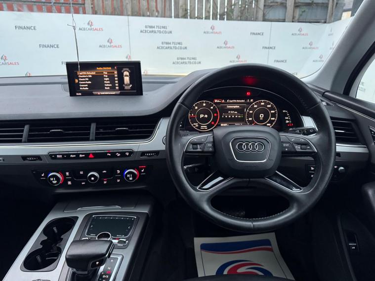 FINANCE & PCP AVAILABLE, COMPLEMENTARY WARRANTY INCLUDED, GOOD CONDITION, WE TAKE PART EXCHANGE! 7 Seater Audi Q7 3.0 TDI V6 SE Tiptronic quattro Euro 6 (s/s) 5dr. HPI Clear, Full Service History, 12 Months MOT Included With No Advisories, 3 Owners, EURO6 ULEZ Compliant, Heads-UP Display, Keyless Start, Cruise Control, Speed Limiting Function, QUATTRO, Audi Drive Select Offroad/Efficency/Comfort/Auto/Dynamic/Individual, Paddle Shifts, Sports Gearbox Modes With Manual Shifting Function, Dynamic Suspension, Electronic Differential Lock, Power Steering - Servotronic, Audi Pre-sense, Autonomous Braking System, Reverse Camera With Kerb View Function, Parking Sensors, Audi Hill Hold Assist, Hill Descent Control, Efficency Assist, Speed Limit Display, Traction Control, Electronic Stabillity Programme, Electronic Differential Lock, Electronic Brakeforce Distribution, Anti-Lock Braking System, Anti Slip Regulation, Tyre Pressure Loss Indicator, Electromechanical Parking Brake With Auto Hold Function, Headlights - Automatic, Xenon Plus Headlights, LED Daytime Running Lights, Headlights - Adaptive, LED Rear Lights, Interior Light Package, Automatic Wipers with Rain Sensor, Electric Opening/Closing Tailgate, Electric Mirrors, Powerfolding Mirrors, Electric Windows, Electric Front Seats With Memory Function, Front Heated Seats, Automatic Dual Zone Climate Control, Air Conditioning, Front And Rear Screen Demister, Audi Sound System, Wireless Charging, Colour Screen Display, Drivers Information Cluster, Trip Computer, Vehicle Status/Information, Navigation, Traffic Information, Bluetooth, Radio, USB, CD, DAB, Telephone Connection, Voice Control, Multifunctional Steering Wheel, Full Leather Seats In Black, QUATTRO Interior/Exterior Badging, Aluminium Exterior Trims/Roof Rails, Privacy Glass, 19inch Alloy Wheels.ALL VEHICLES ARE FULLY INSPECTED PRIOR TO SALE. We can assist you in securing finance for your New car with ease- regardless of your credit status/history. We include a COMPLEMENTARY WARRANTY on all our vehicles. Be our next happy customer today! dealer's website