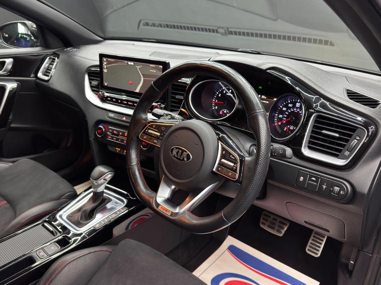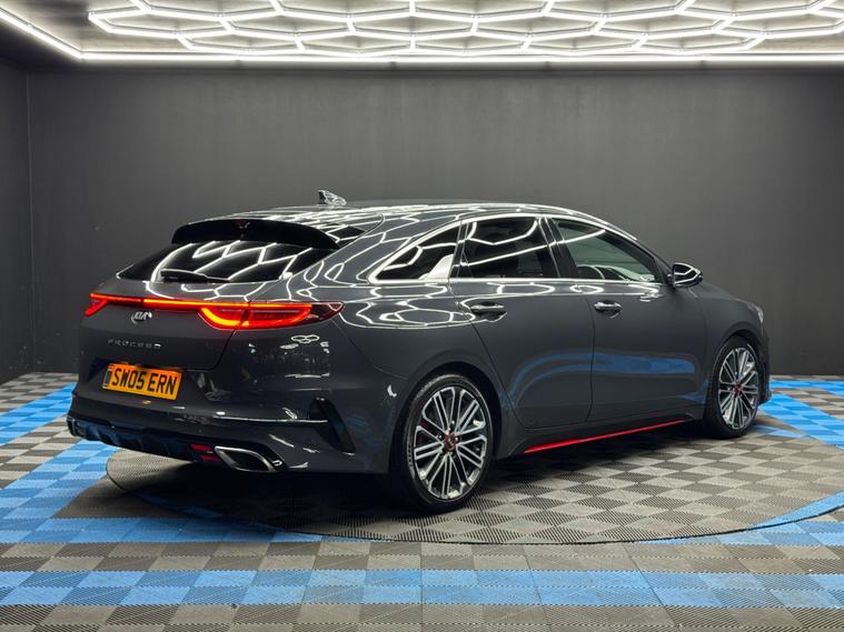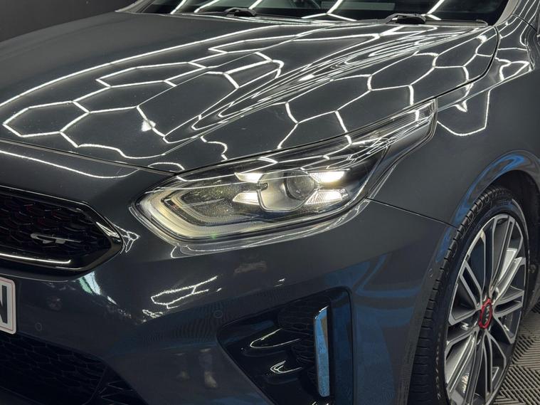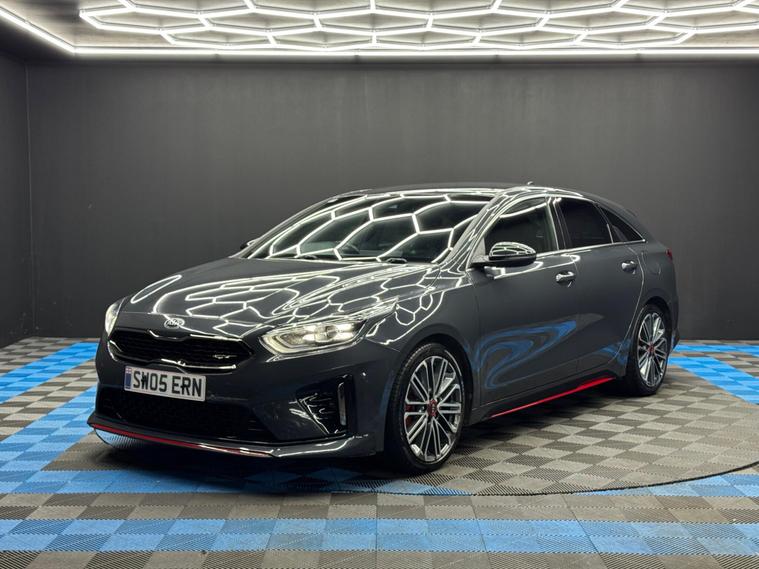 Here at Motor Gurus we are delighted to offer a Kia ProCeed 1.6 T-GDi GT Shooting Brake DCT. This vehicle is in immaculate condition inside and out. This specific vehicle is finished in a GLOSS GREY and is contrasted by a BLACK LEATHER/SUEDE interior. This vehicle comes included with: FRONT & REAR PARKING SENSORS, REAR PARKING CAMERA, PRIVACY GLASS, FRONT HEATED SEATS, PERFORATED GRIPPED LEATHER STEERING WHEEL, CRUISE CONTROL, AUTOMATIC HEADLIGHTS, AUTO HOLD, TWIN CUPHOLDERS, DRIVING MODES, AUTO PARK, CLIMATE CONTROL, HEATED STEERING WHEEL, SAT NAVIGATION, DAB RADIO, BLUETOOTH AUDIO, TELEPHONE CONNECTIVITY, APPLE CARPLAY, LANE KEEPING ASSIST, TYRE PRESSURE MONITORING AND MUCH MORE! Our Kia ProCeed 1.6 T-GDi GT Shooting Brake DCT has come to us with SERVICE HISTORY, 2 KEYS and is a 1 FORMER KEEPER (2 owners) FROM NEW! We will also provide a 12 MONTH MOT and a FRESH OIL SERVICE before it leaves our premises (OTR)..
