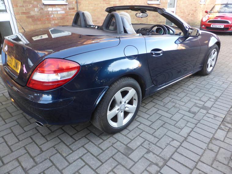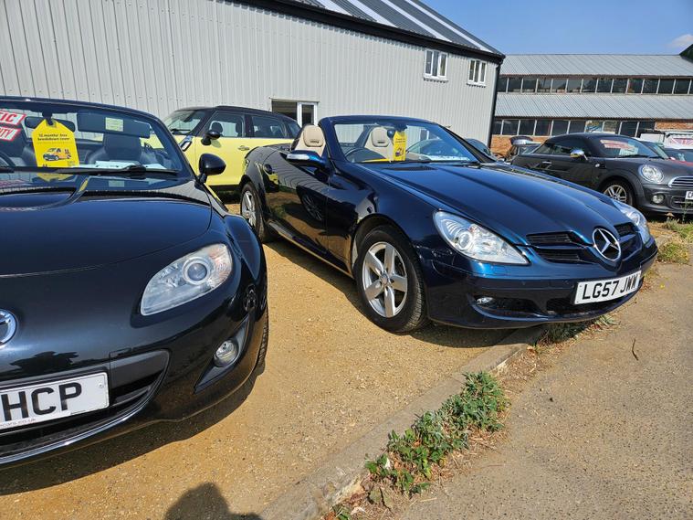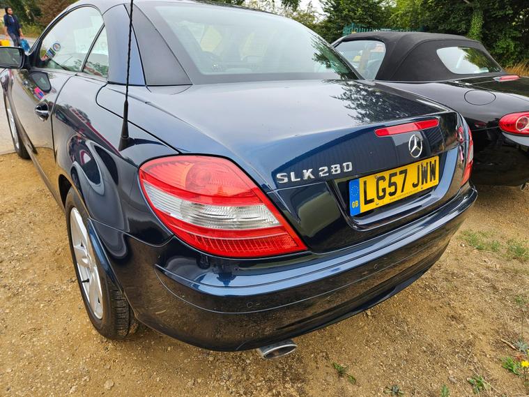 This 2007 Mercedes-Benz SLK 3.0 SLK280 Convertible 2dr Petrol 7G-Tronic (222 g/km, 231 bhp) with 134, 000 miles on the clock is a sleek and stylish ride that's ULEZ compliant and comes with an MOT that doesn't expire until 01/07/2026. With 2 doors and 2 seats, this convertible is perfect for cruising, especially with its Tanzanite Blue designo metallic paint and transparent wind deflector. The folding exterior mirrors and rain sensing wipers add convenience to this already impressive vehicle. Having had only 2 previous registered keepers, this car is sure to turn heads wherever it goes. Ideal for those looking for a smooth and powerful driving experience, this SLK is a true beauty..