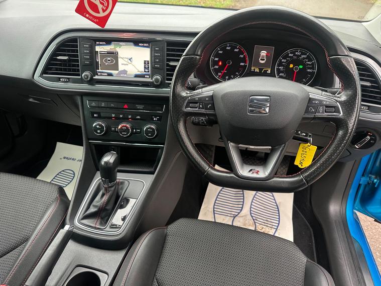 - Steering Wheel - Flat-Bottomed Perforated Leather with Red Stitching and FR Logo