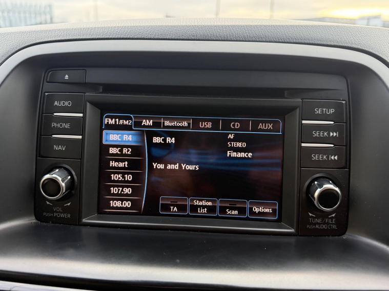 READY TO DRIVE AWAY*ADVISORIES ON MOT HAS BEEN RECTIFIED*This 2013 Mazda CX-5 SKYACTIV-G Sport is a rare find, having had only two owners from new. This well presented example features a responsive 2.0 litre petrol engine and a smooth manual transmission. Inside, you'll find comfortable front seats that are heated for those colder journeys, and a premium BOSE sound system with nine speakers and a 6 CD changer to keep you entertained. For convenience, it also includes dual zone climate control, front parking sensors, and striking Bi-Xenon headlights.This CX-5 offers a compelling package with several highlights that set it apart. Its impressive fuel economy of 47 miles per gallon means fewer trips to the petrol station, and its low CO2 emissions are beneficial for the environment. The acceleration from 0-62mph in just 9.2 seconds demonstrates its capable performance. Furthermore, the generous boot space provides ample room for luggage or shopping, and its low insurance group rating makes it an economical choice for many drivers..